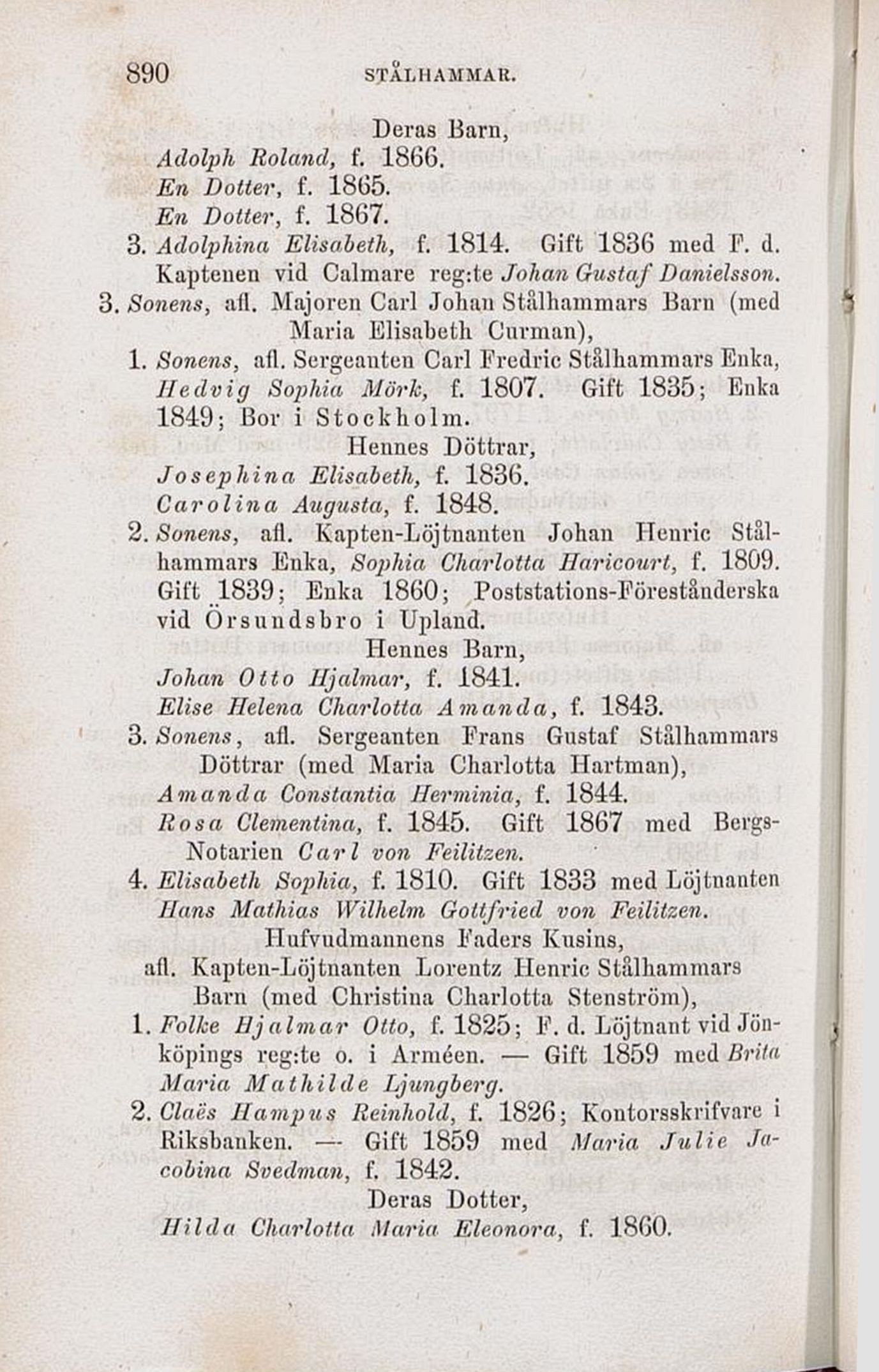 3. Sonens, afl. Majoren Carl Johan Stålhammars Barn (med