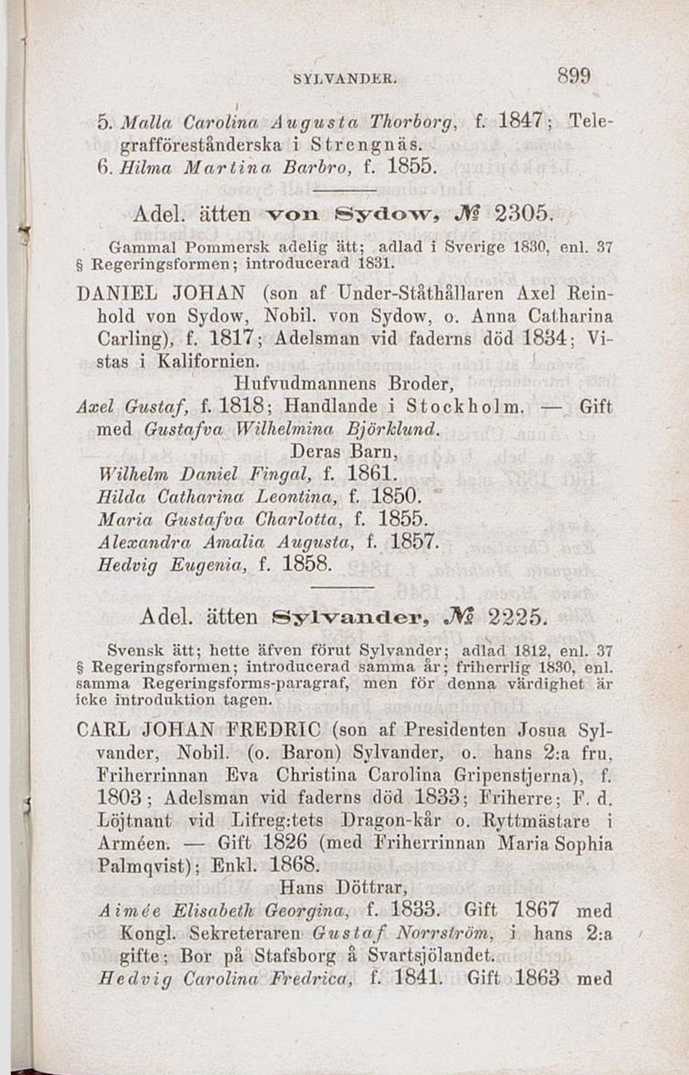 Svensk ätt; hette äfven förut Sylvander; adlad 1812, enl. 37