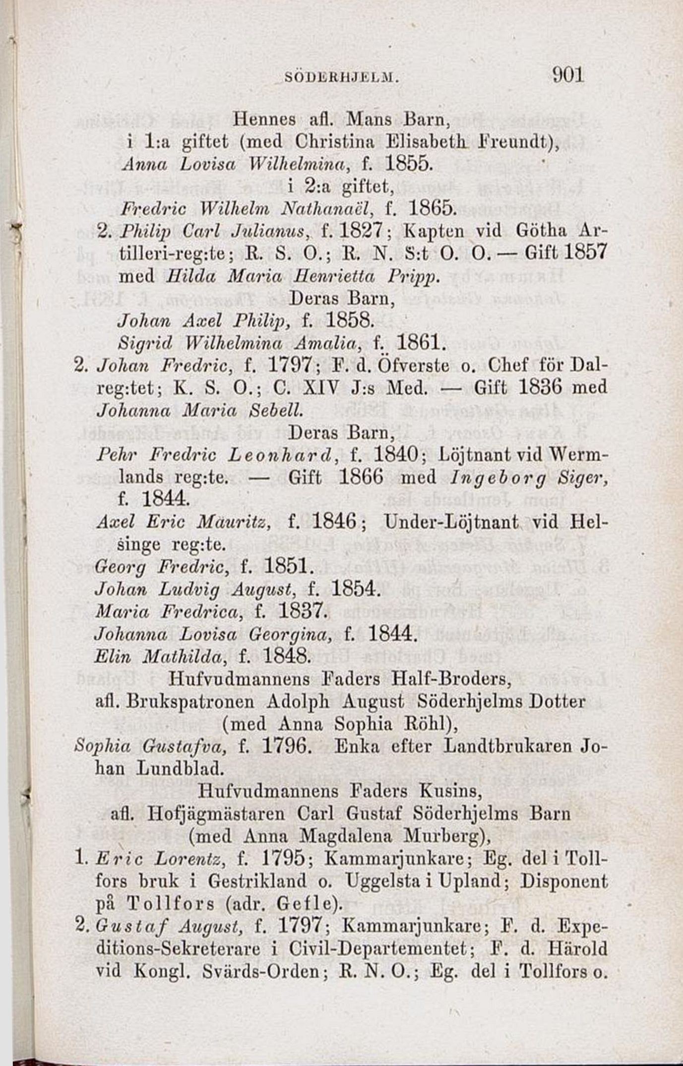 2. Johan Fredric, f. 1797; F. d. Öfverste o. Chef för