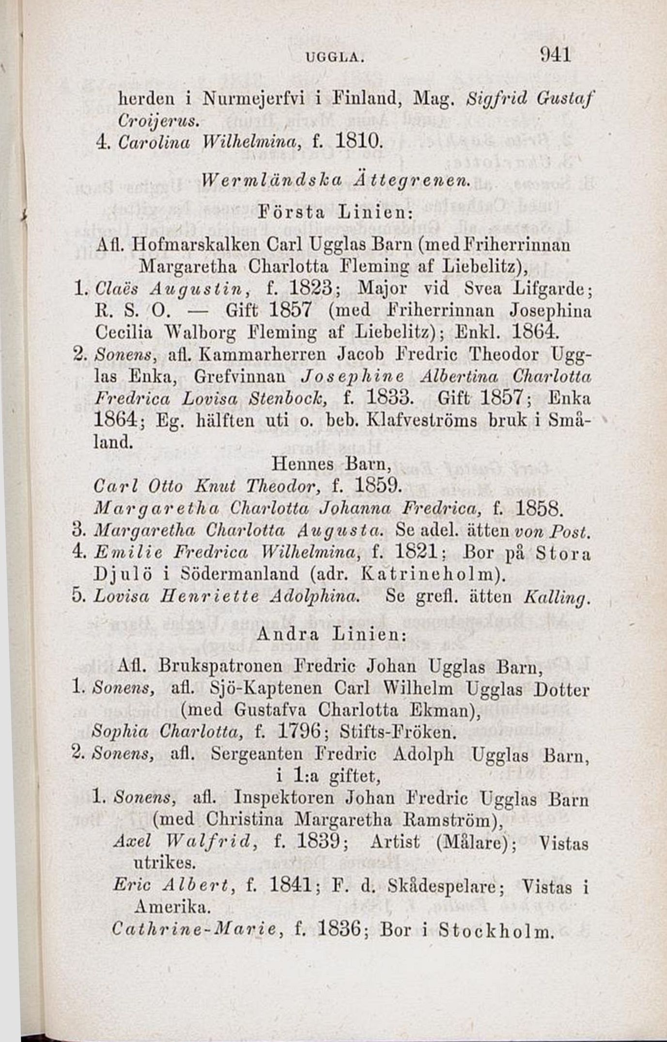 1.	Sonens, all. Sjö-Kaptenen Carl Wilhelm Ugglas Dotter
