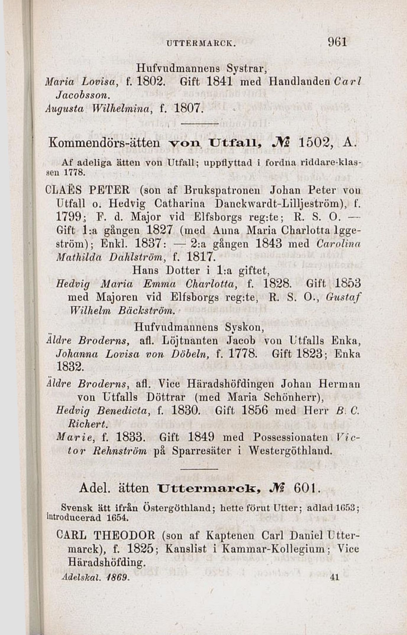 Kommendörs-ätten von Utfall, JVs 1502, A.