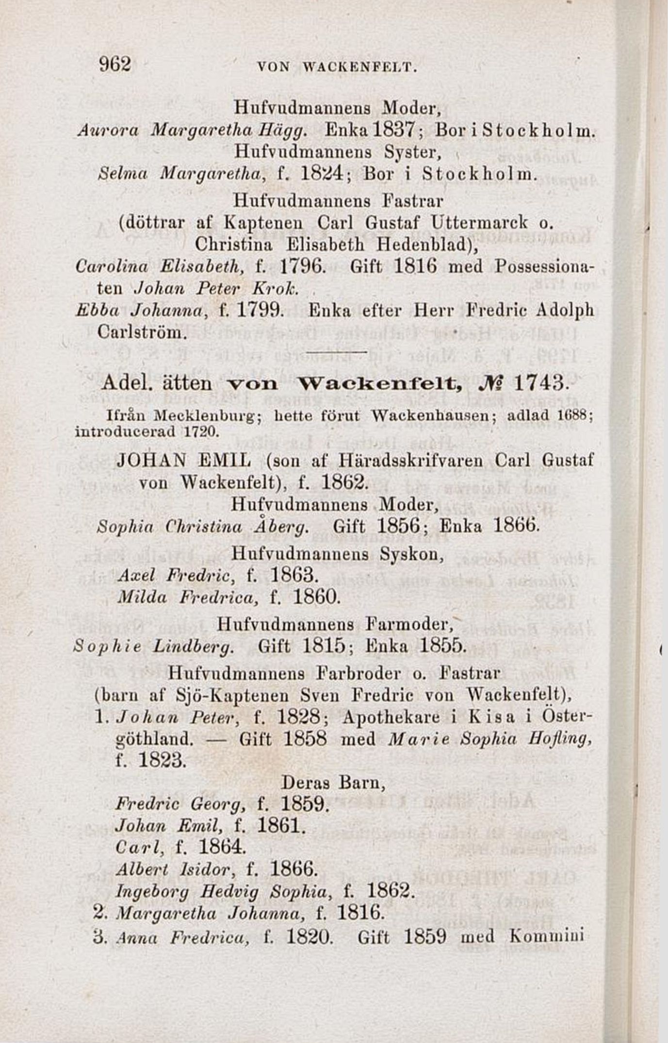 (barn af Sjö-Kaptenen Sven Fredric von Wackenfelt),