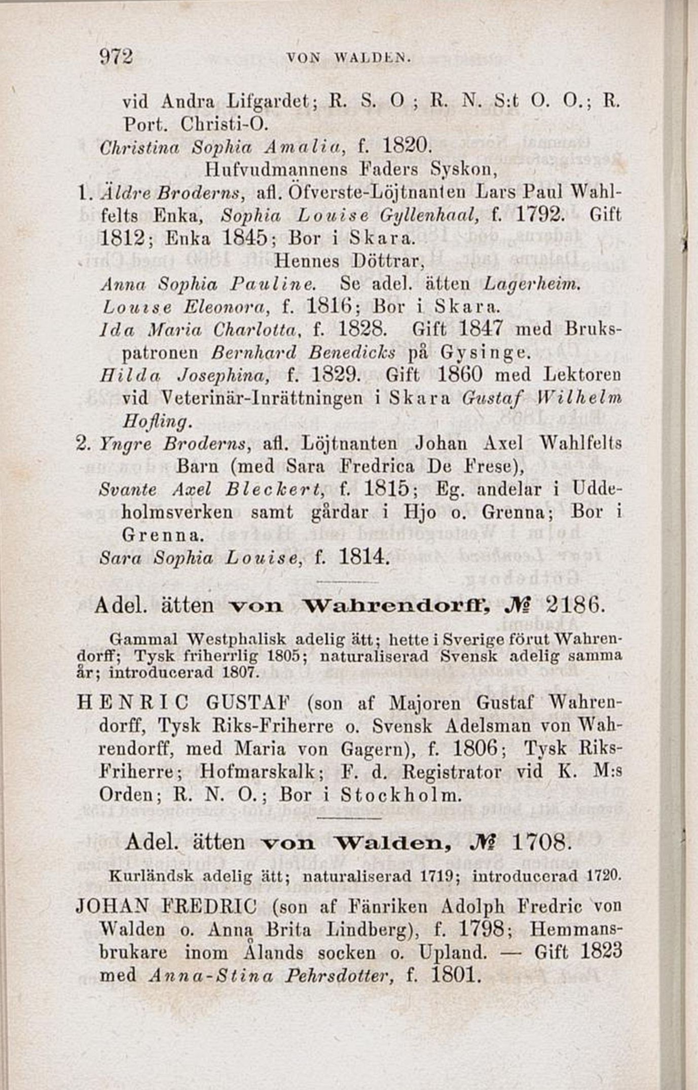 Wah-rendorff, med Maria von Gagern), f. 1806; Tvsk