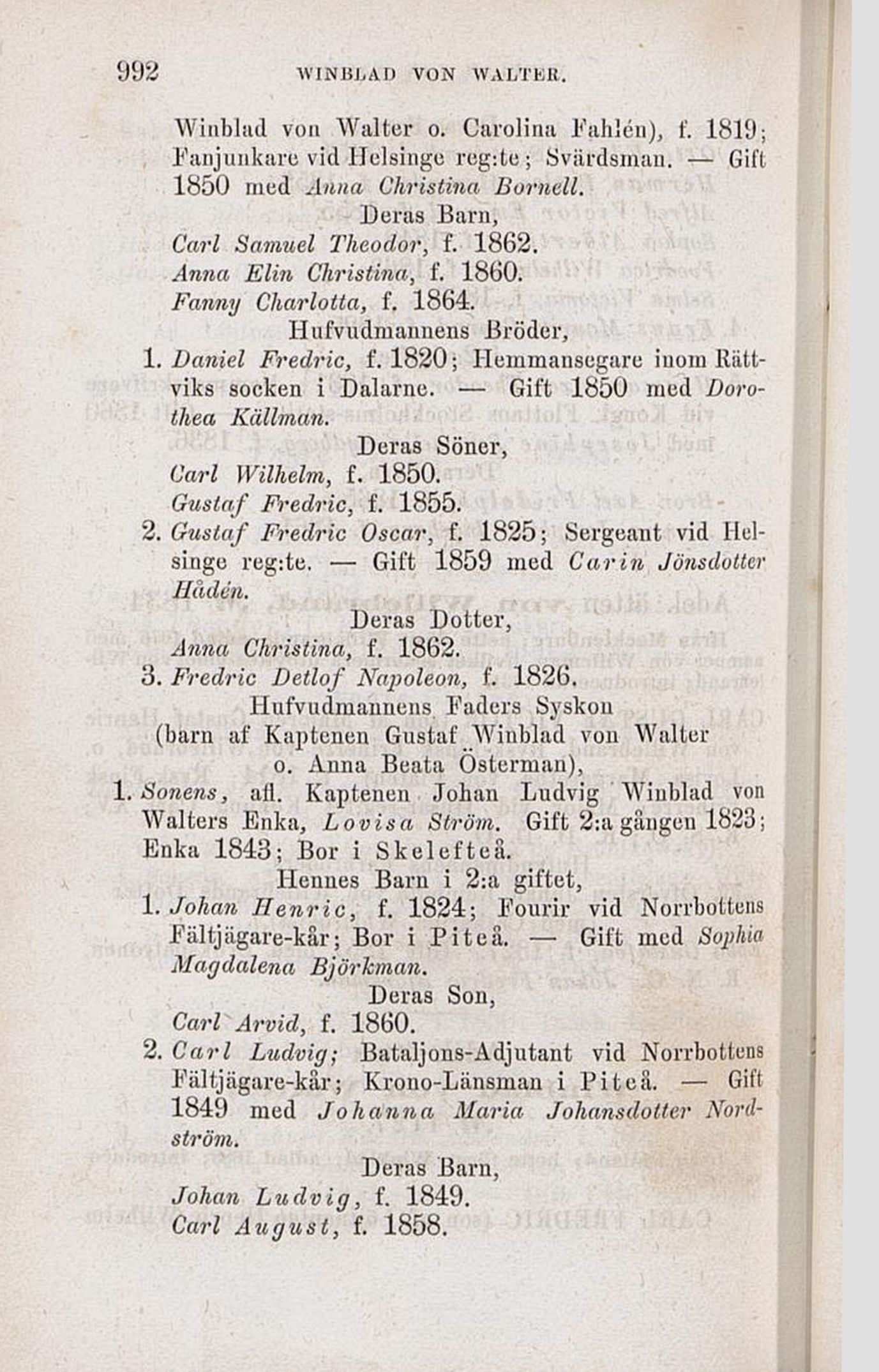 1. Sonens, all. Kaptenen Johan Ludvig Winblad von
