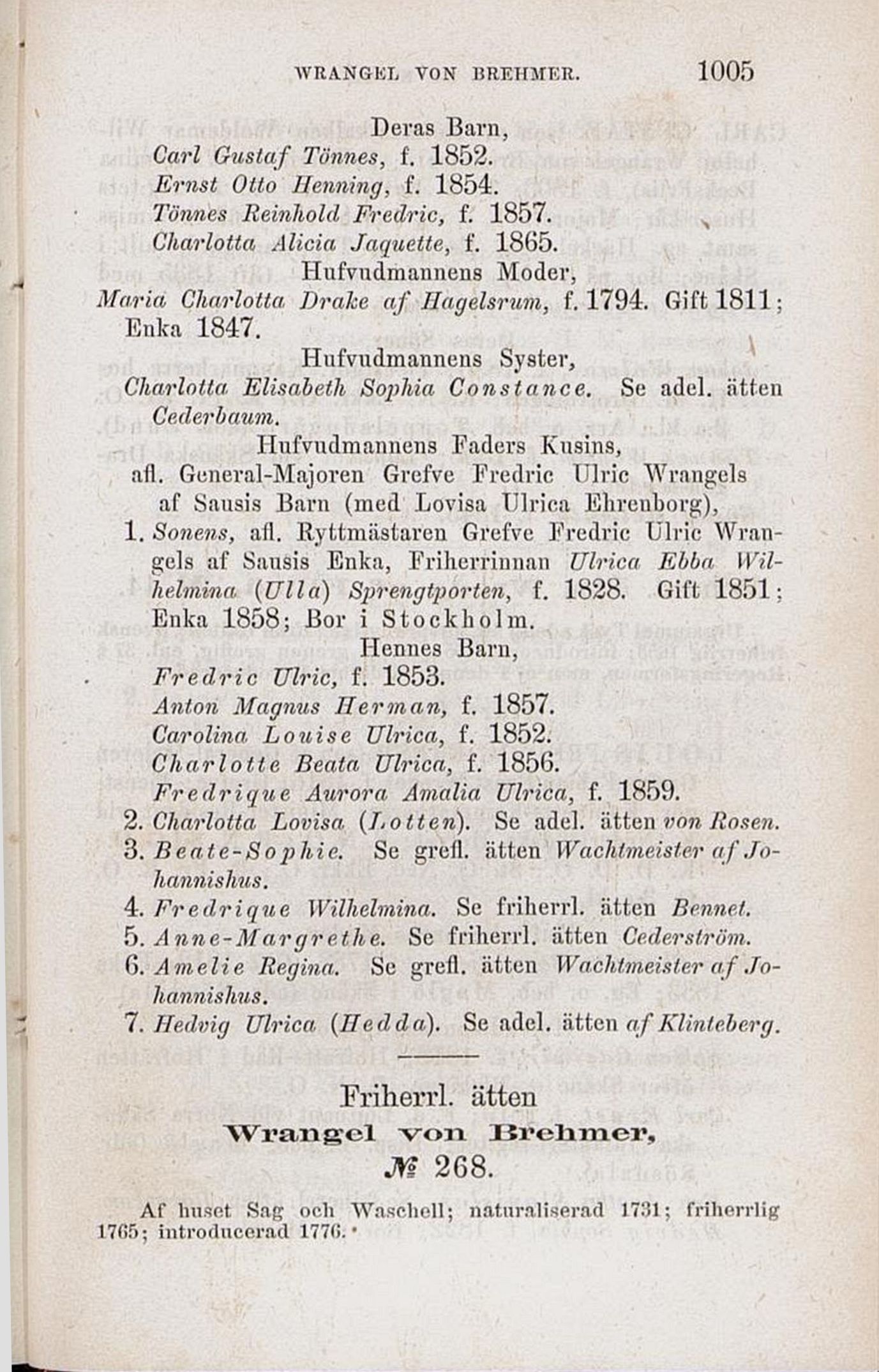7. Hedvig Ulrica (Hedda). Se adel. ätten af Klinteberg.