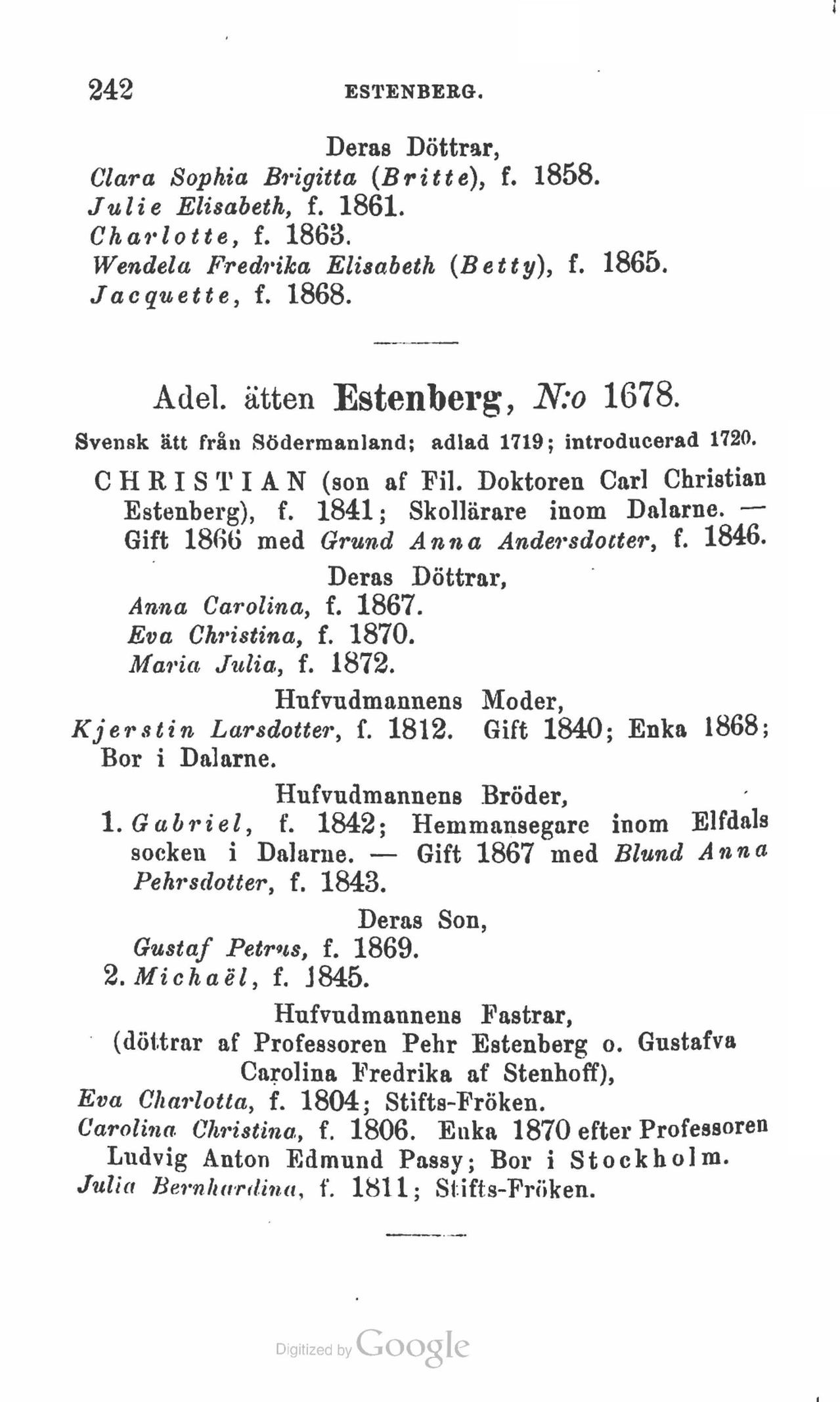 Adel. ätten Estenberg, N:o 1678.
