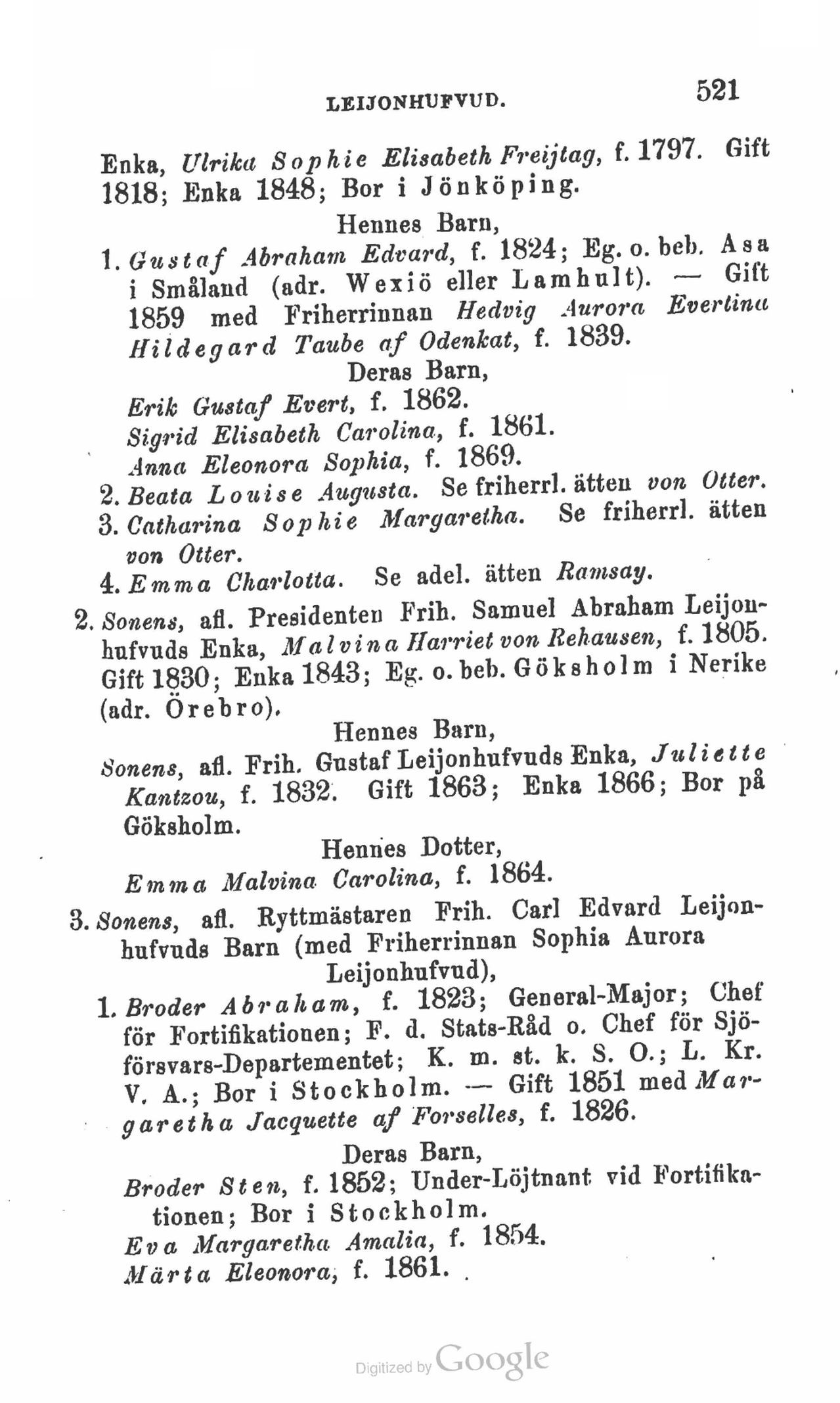 3. Sonens, afl. Ryttmästaren Frih. Carl Edvard Leijon-