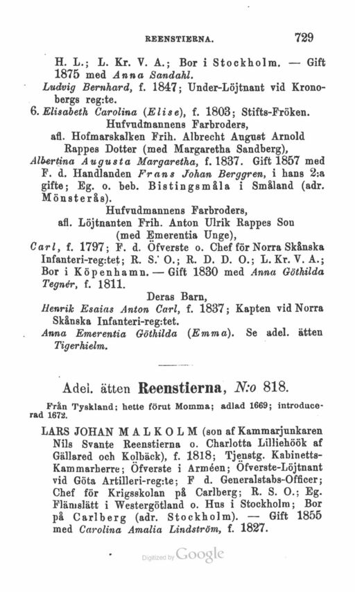 Carl, £. 1797; F. d. Öfverste o. Chef för Norra Skånska
