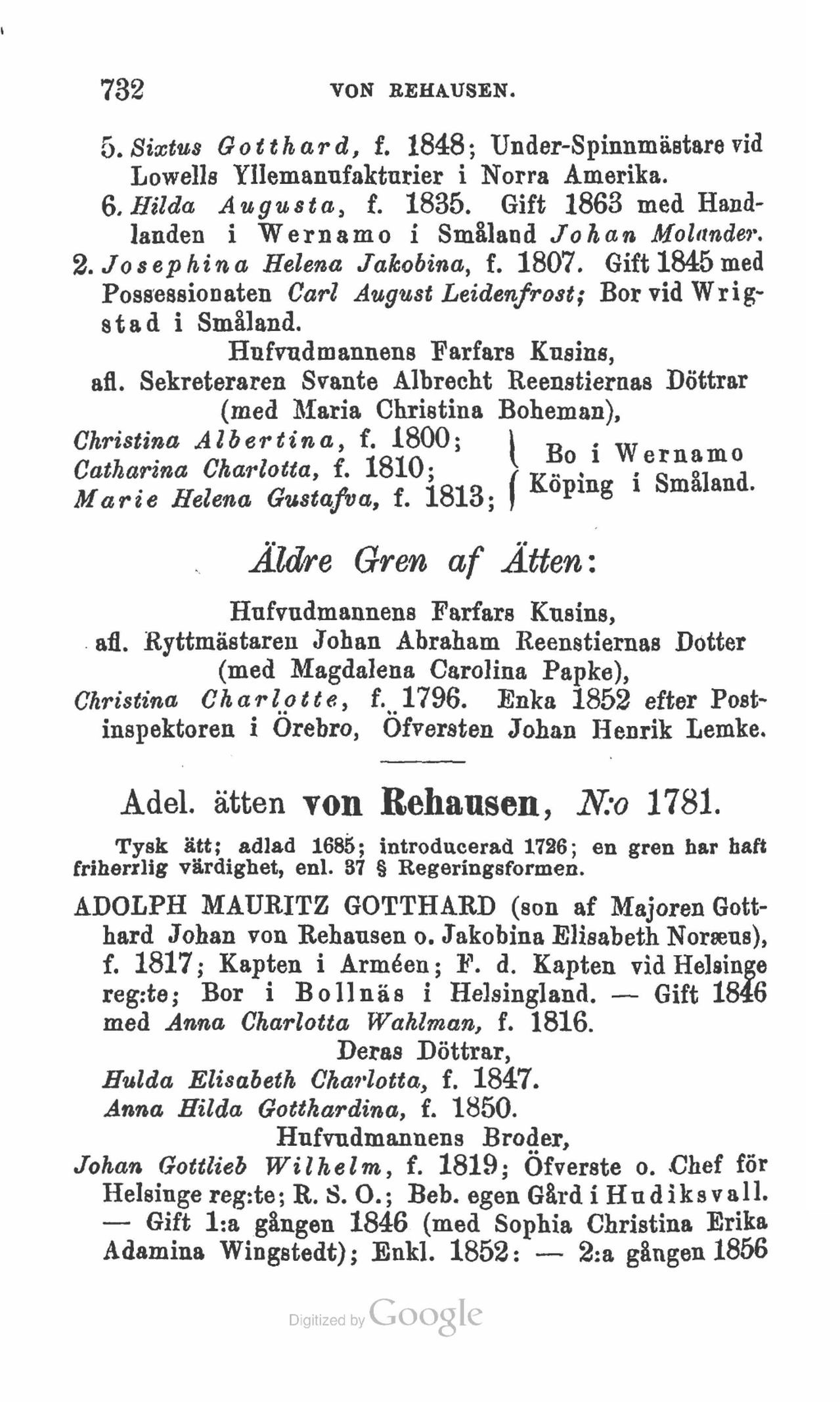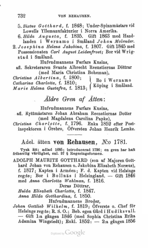 Adel. ätten von Rehausen, N:o 1781.