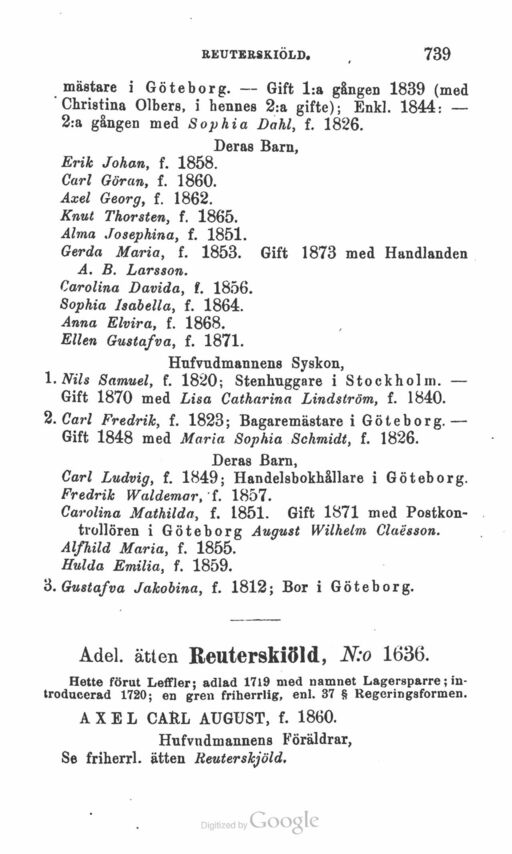 2. Carl Fredrik, f. 1823; Bagaremästare i Göteborg. —