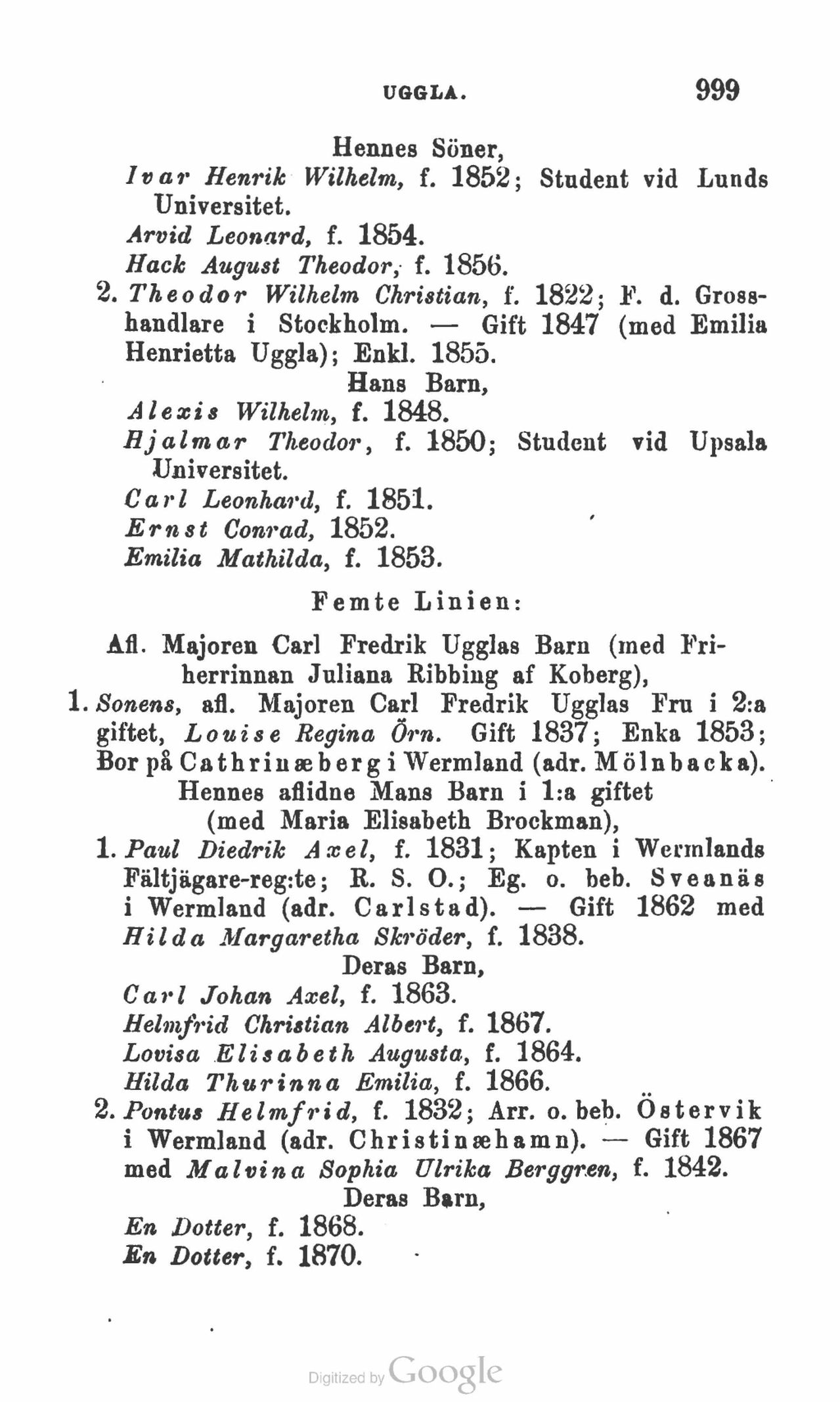 Afl. Majoren Carl Fredrik Ugglas Barn (med Fri-