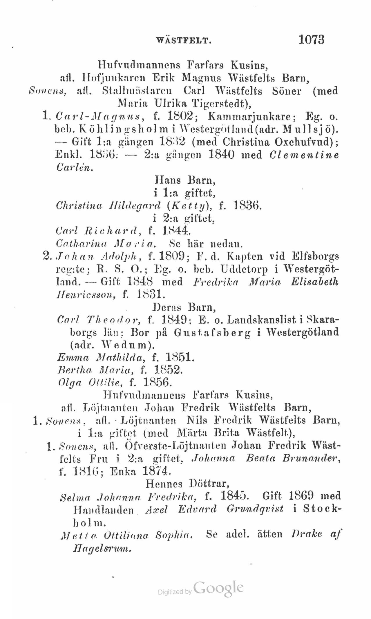1. Sonens, al: Löjtnanten Nils Fredrik Wästfelts Barn,