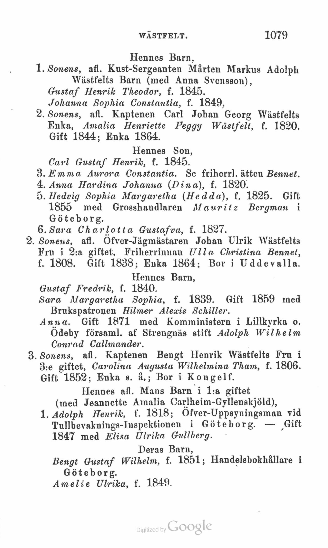 . Sonens, afl. Kaptenen Bengt Henrik Wästfelts Fru i