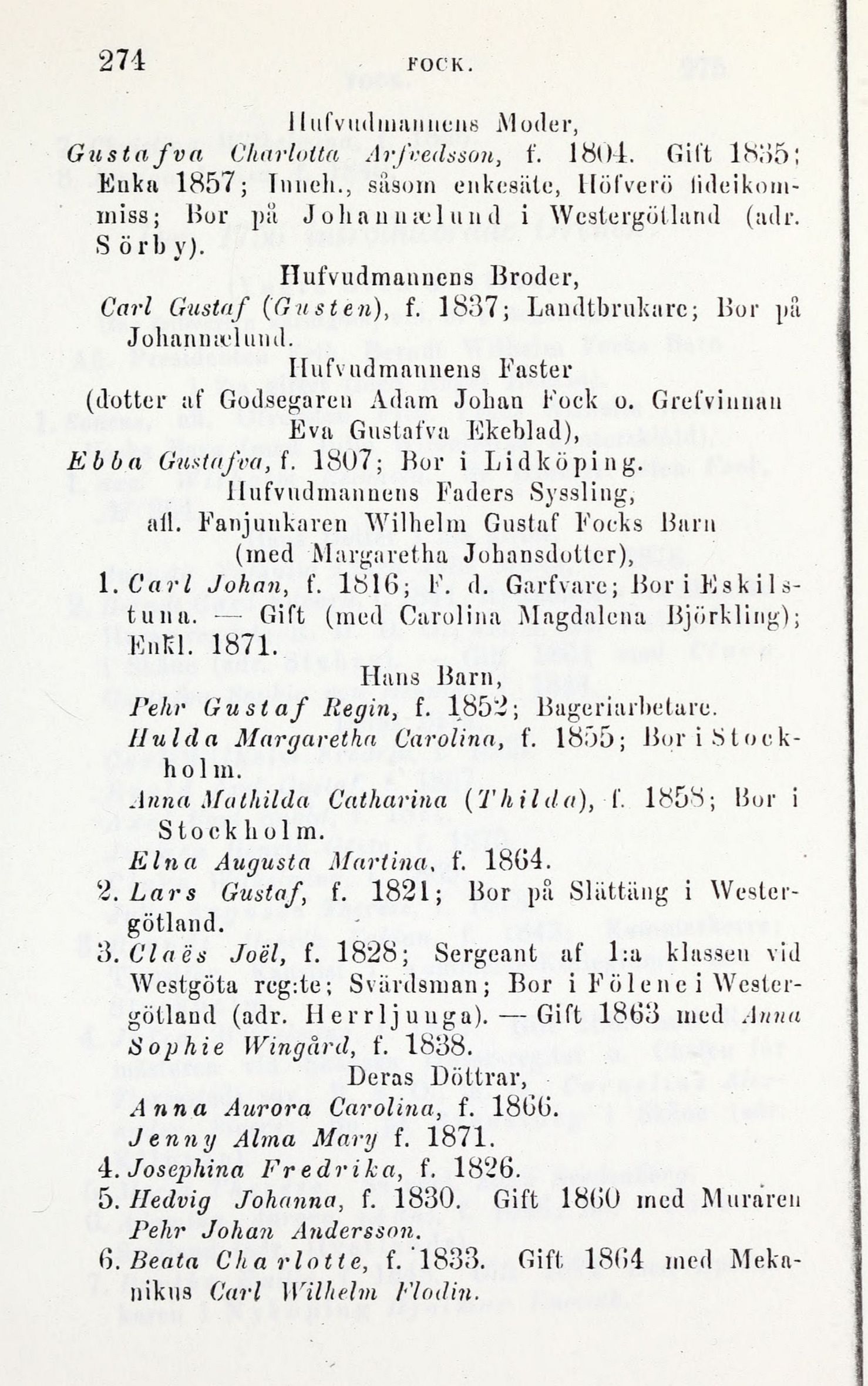 afl. Fanjunkaren Wilhelm Gustaf Focks Barn