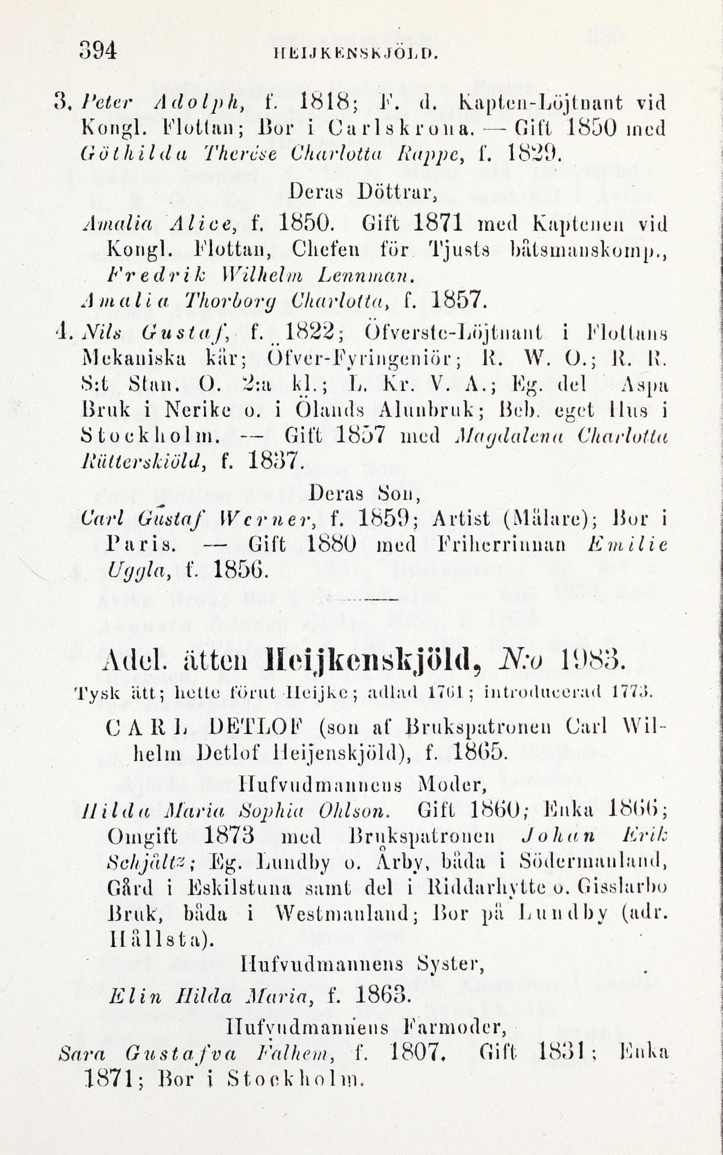 3, Heter Adolph, t’. 1818; i1’, d. Kapten-Löjtnant vid