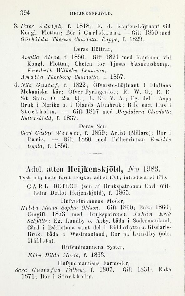 Adel. ätten Heijkcnskjöld, N:o 1U83.