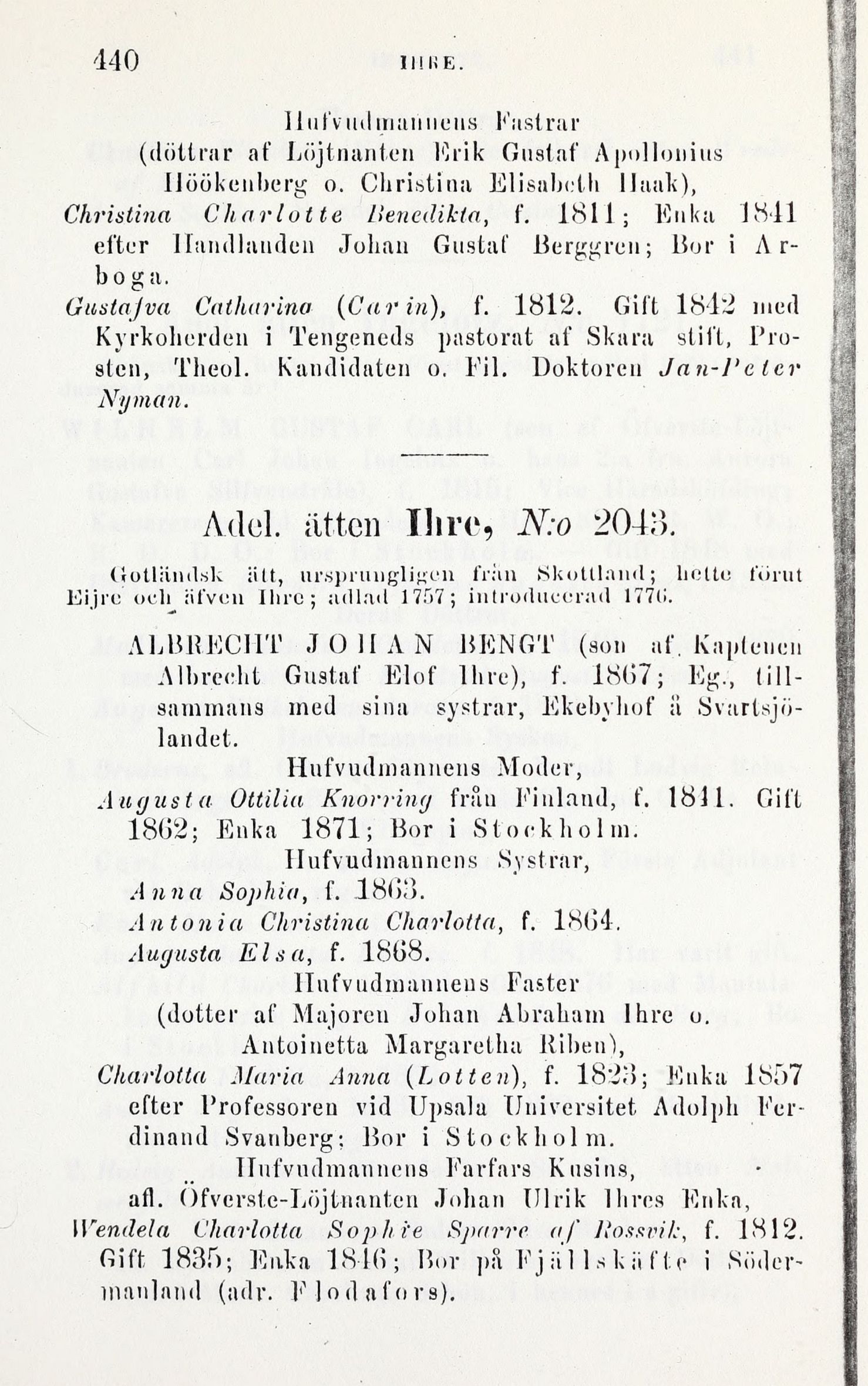Albrecht Gustaf Elof Ihre), f. 18(57; Eg.,