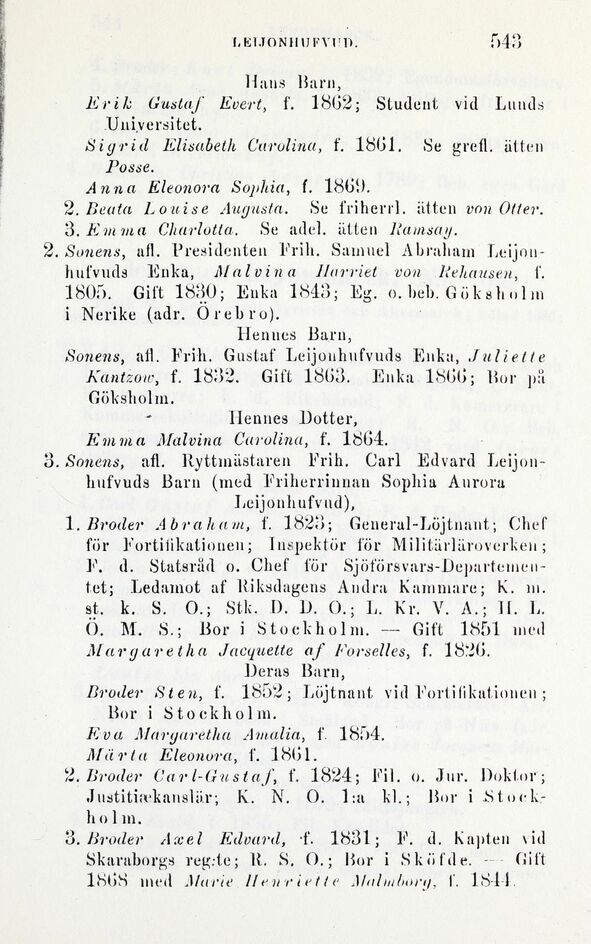 3. Broder Axel Edvard, -f. 1831; F. d. Kapten vid