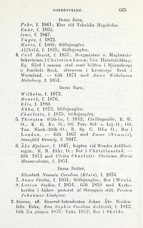 4 .Carl Henrik, f. 1837; Borgmästare o. Magi