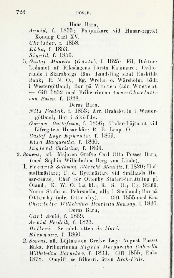 1. Fredrik Salomon Albrecht Mauritz, f. 1820;