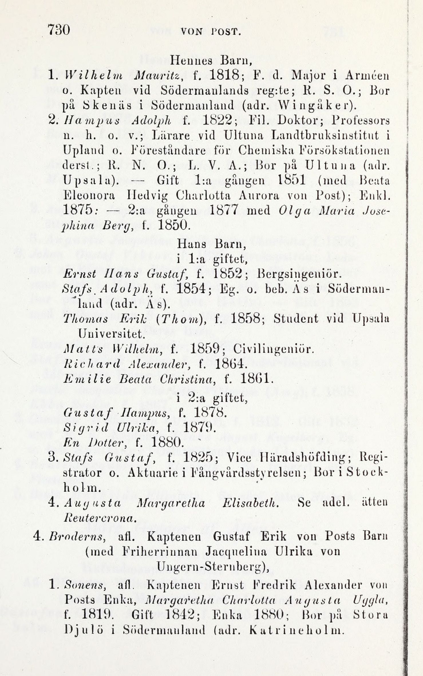 1. Wilhelm Mauritz, f. 1818; F. d. Major i Arméen