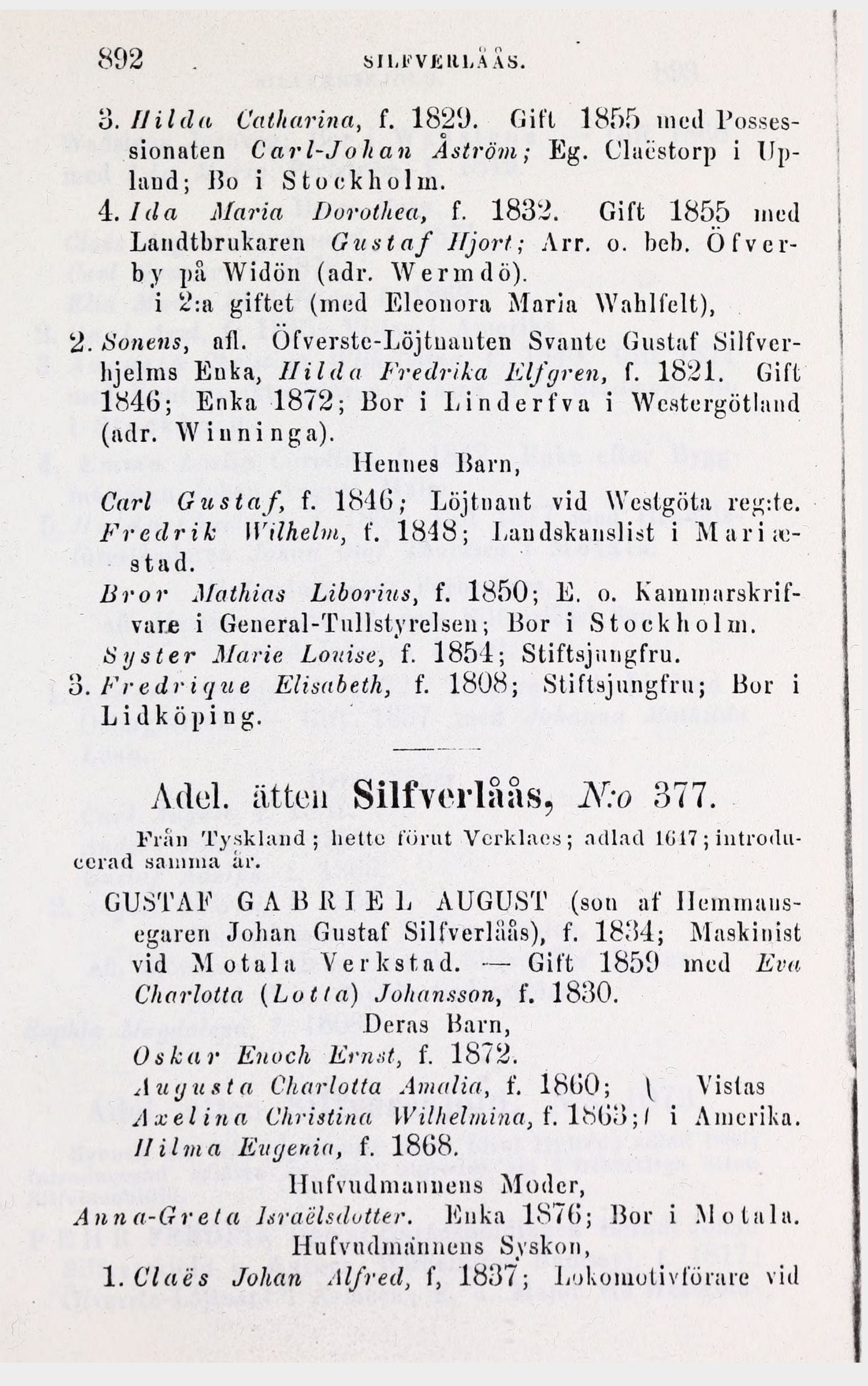llemmans-egaren Johan Gustaf Silfverlåås), f. 1834; Maskinist