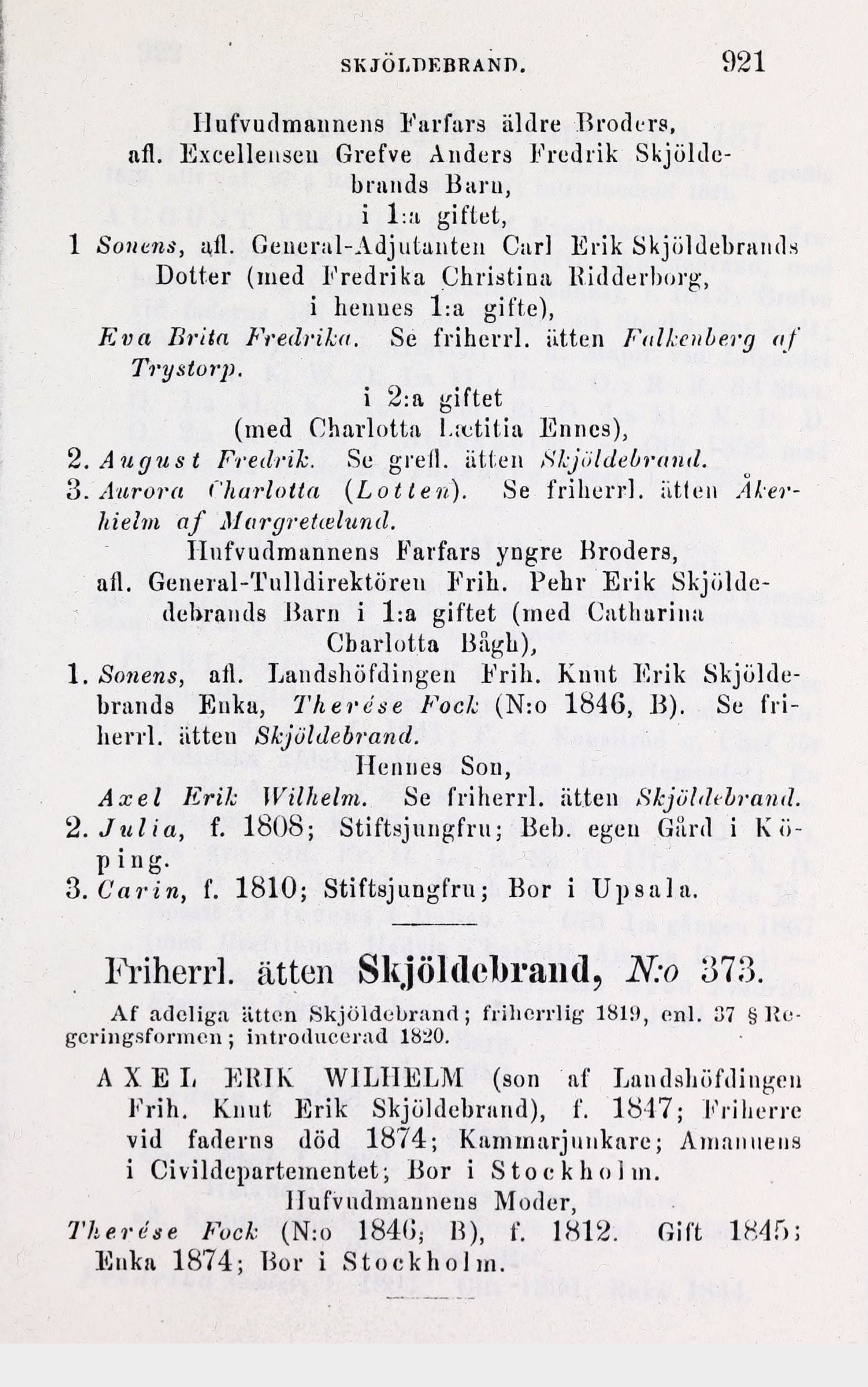 Af adeliga ätten Skjöldebrand; friherrlig 181!), enl. 37 §
