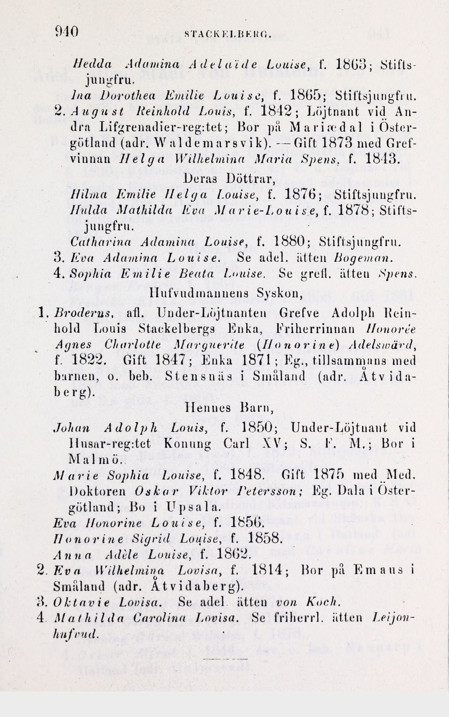 Östergötland (adr. Waldemarsvik). —Gift 1873 med