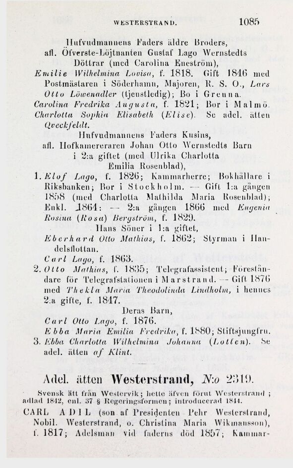 1 .Elof Lågo, f. 1826; Kammarherre; Bokhällare i