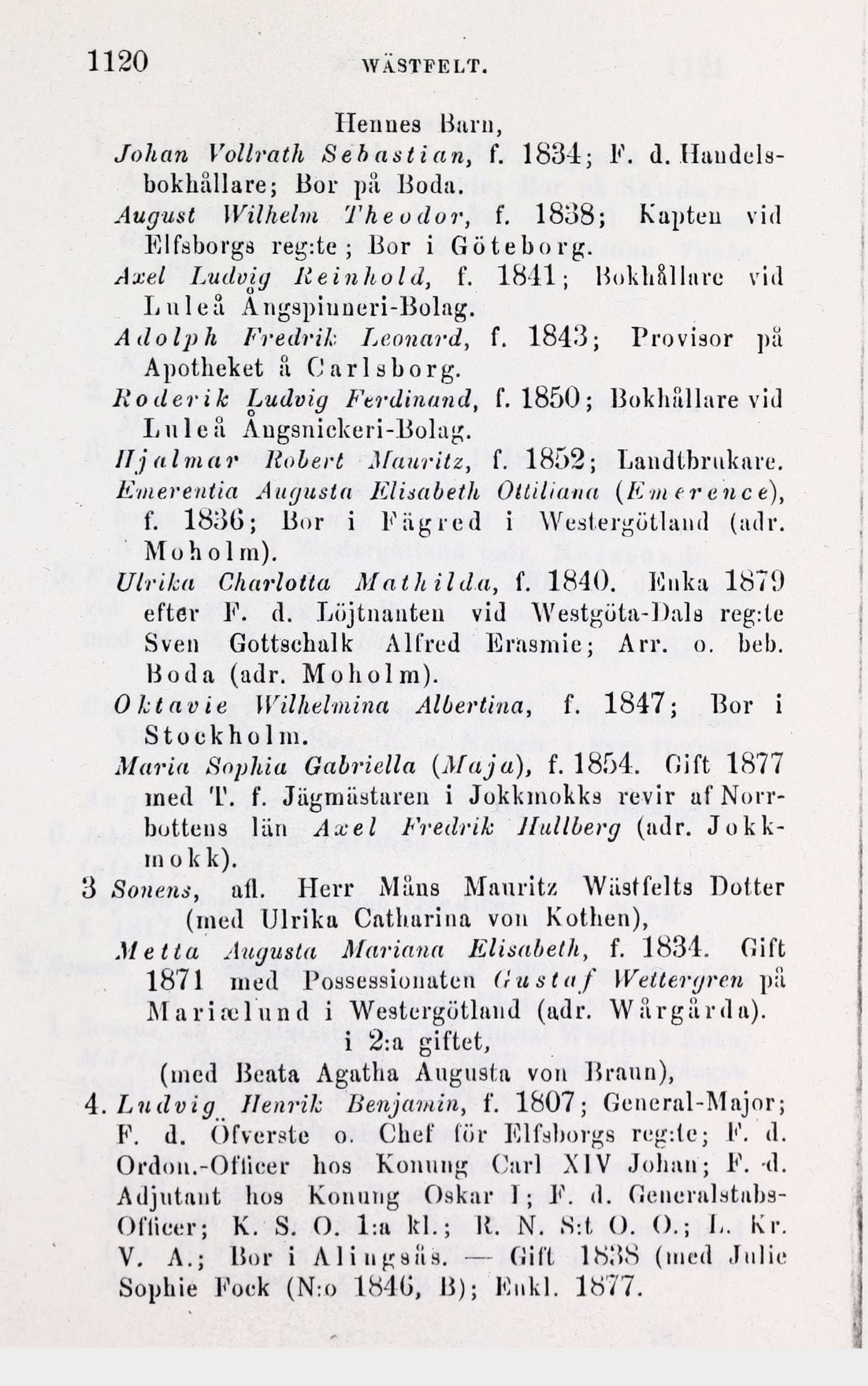 f. 1836; Bor i Fäg red i Westergötland (adr.