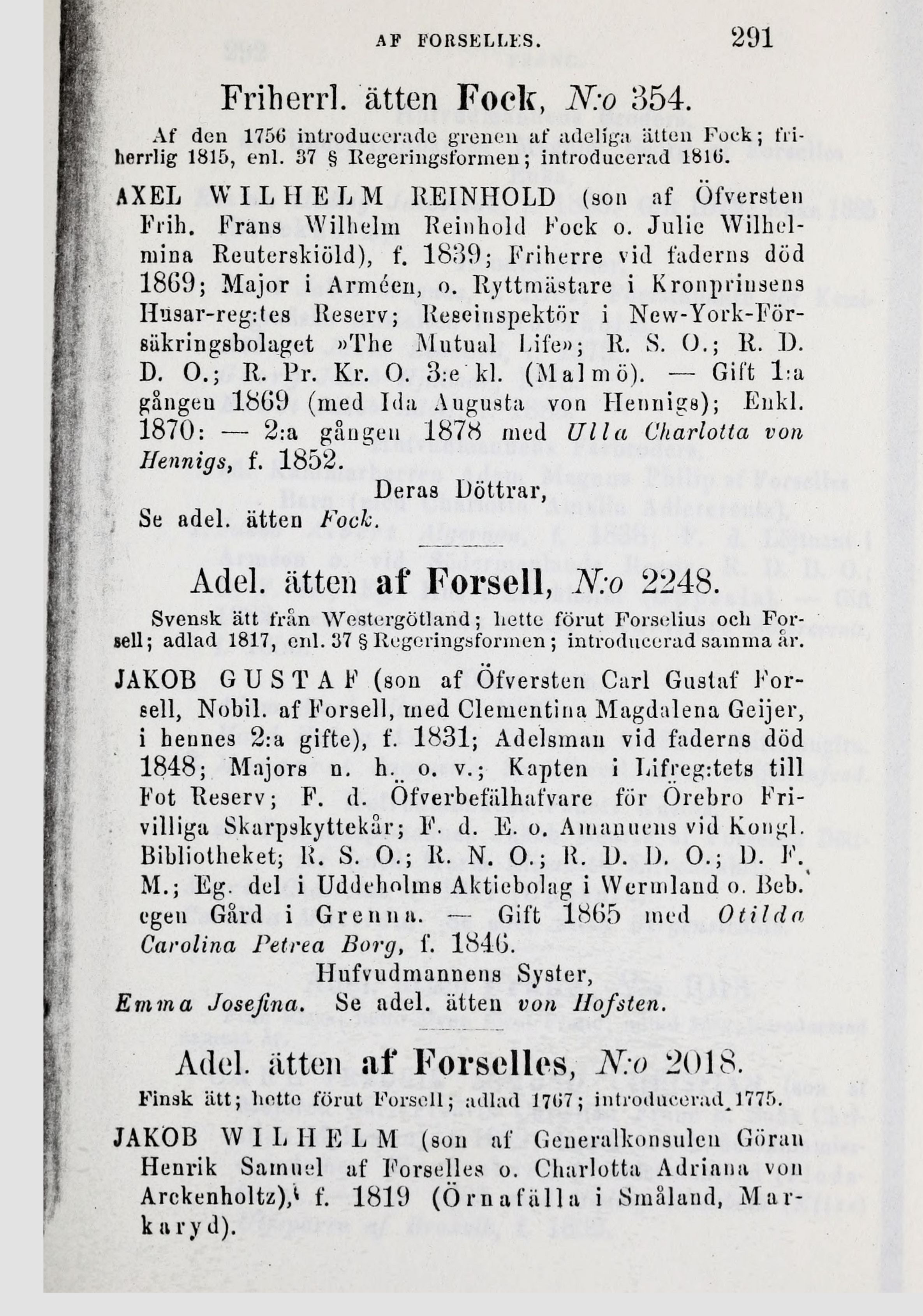 Forsell; adlad 1817, enl. 37 § Regeringsformen ; introducerad samma år.
