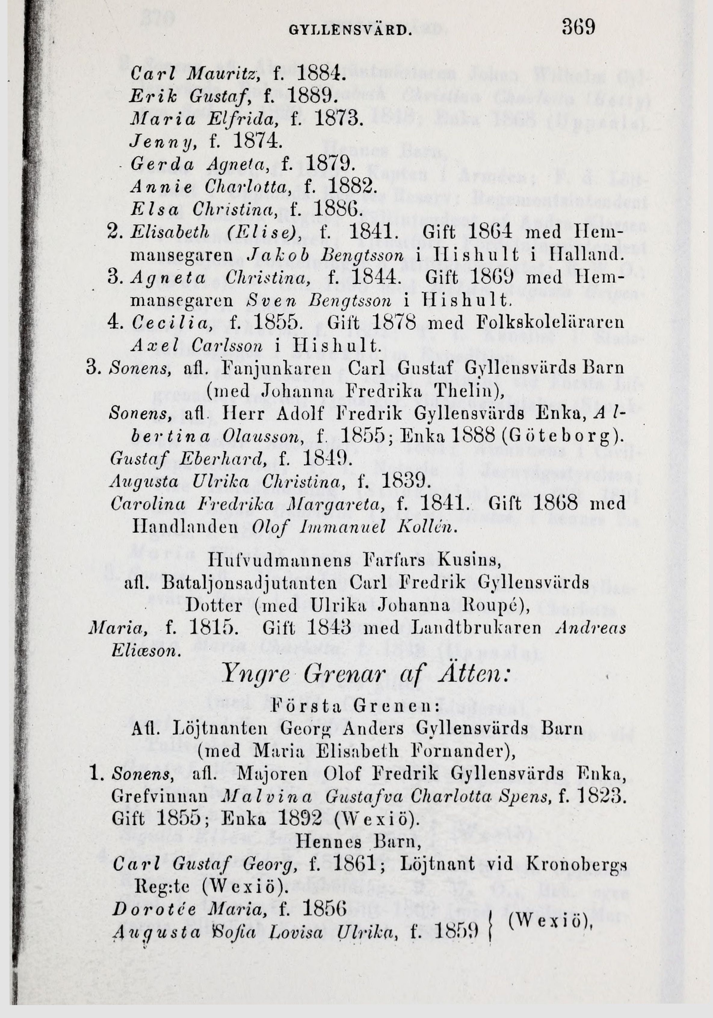 3. Sonens, afl. Fanjunkaren Carl Gustaf Gyllensvärds Barn