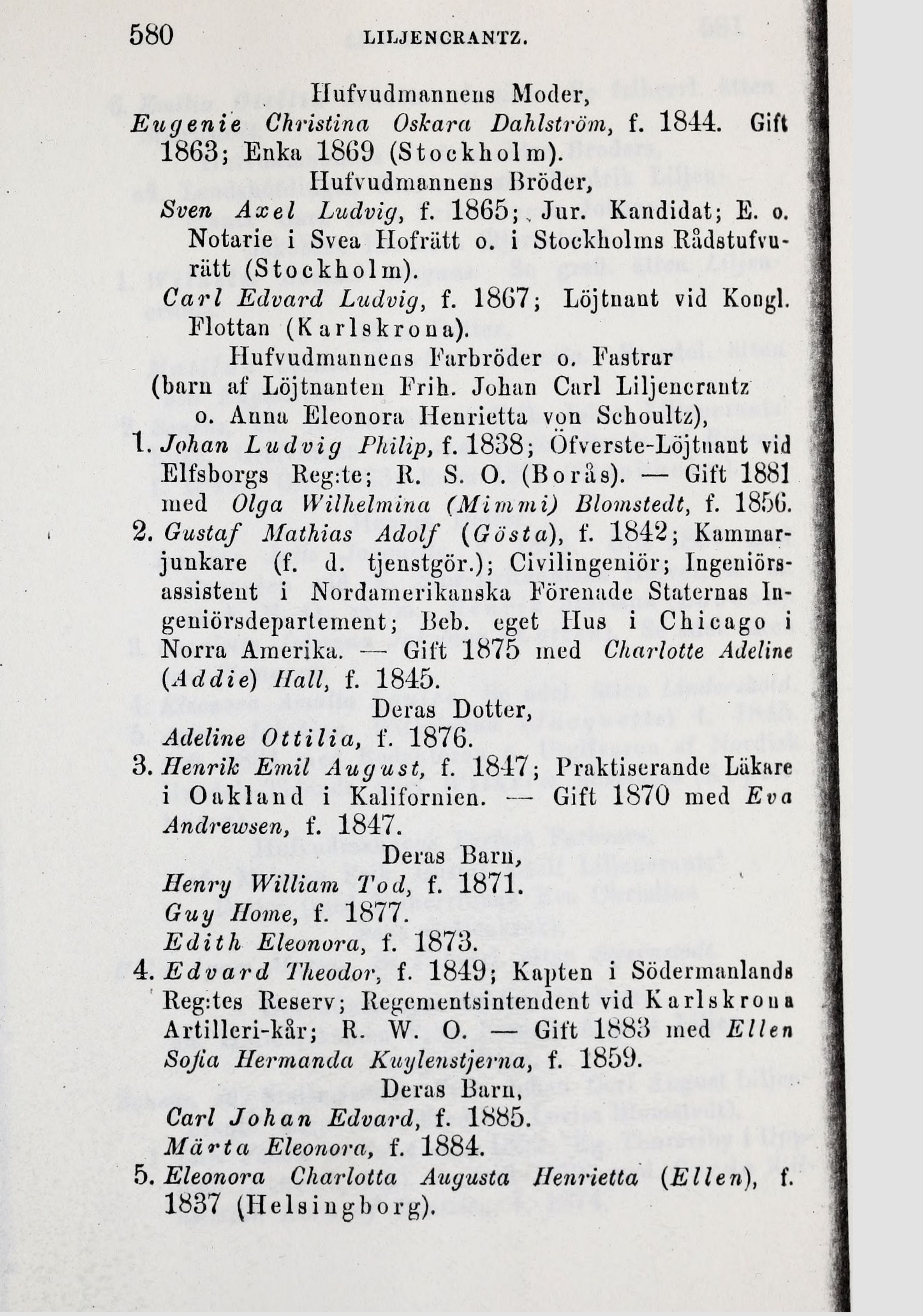 1. Johan Ludvig Philip, f. 1838; Öfverste-Löjtnant vid