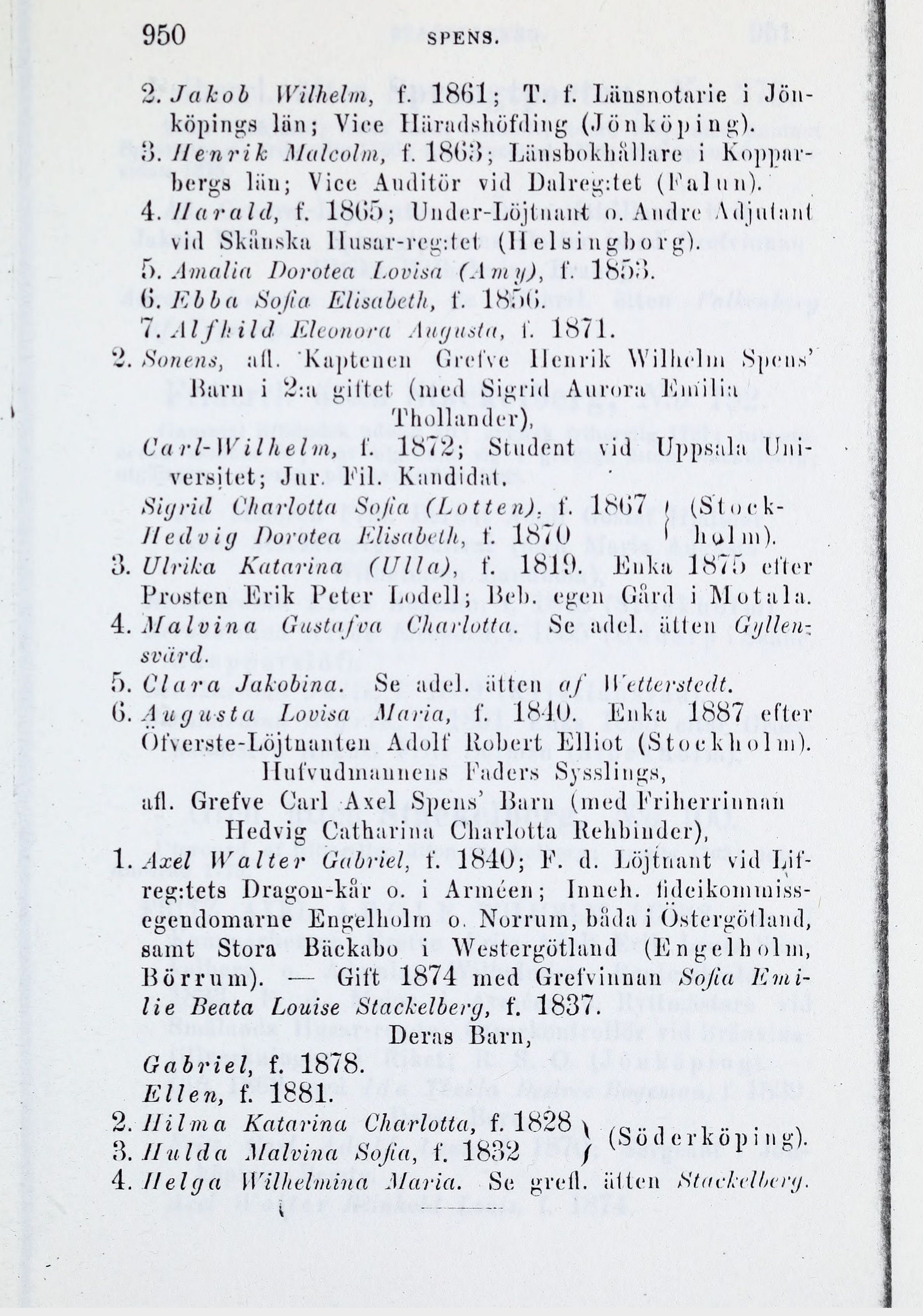 2. Jakob Wilhelm, f. 1801; T. i’. Länsnotarie i