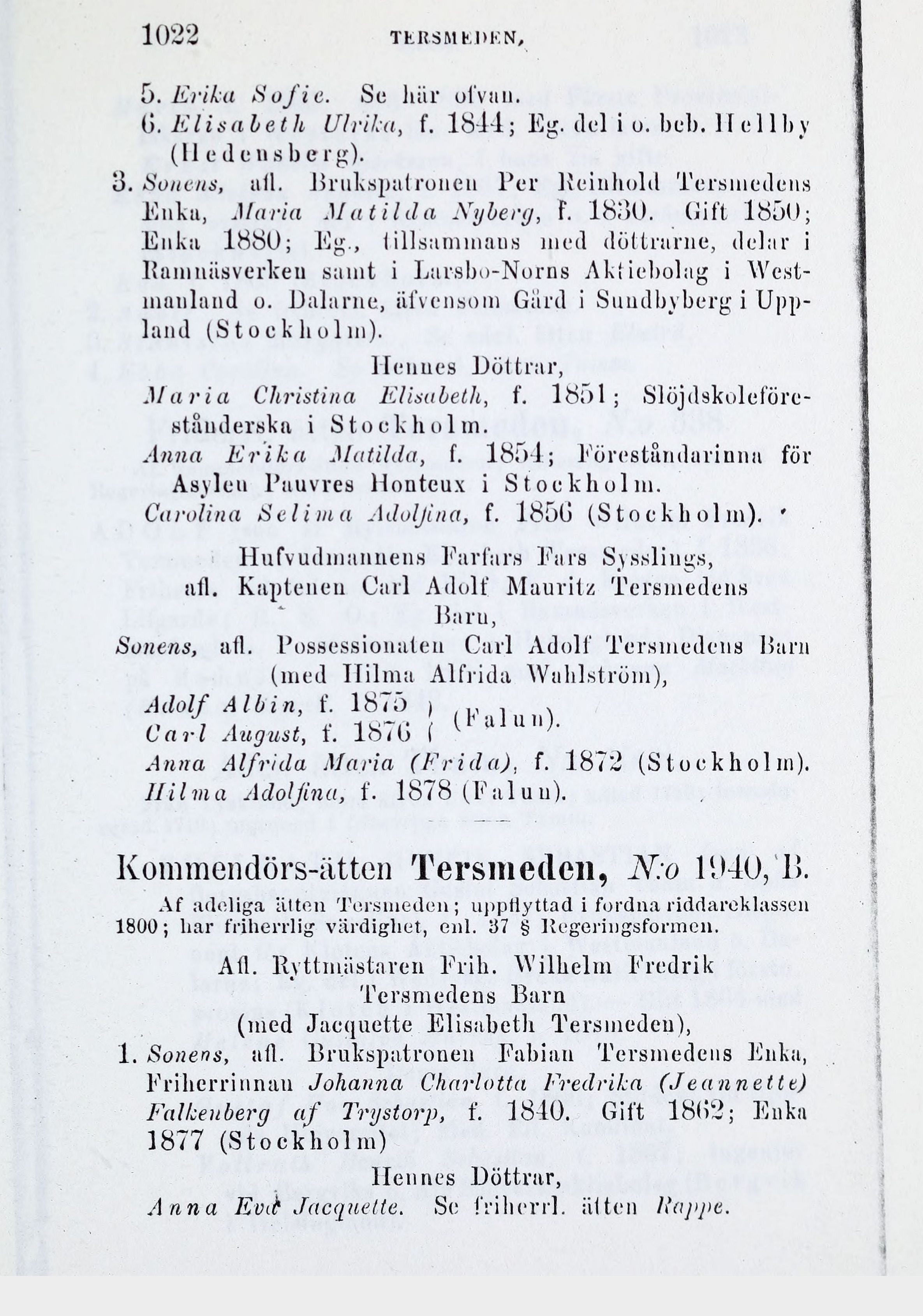Kommendörs-ätten Tersmeden, N:o 1(J40, 1>.