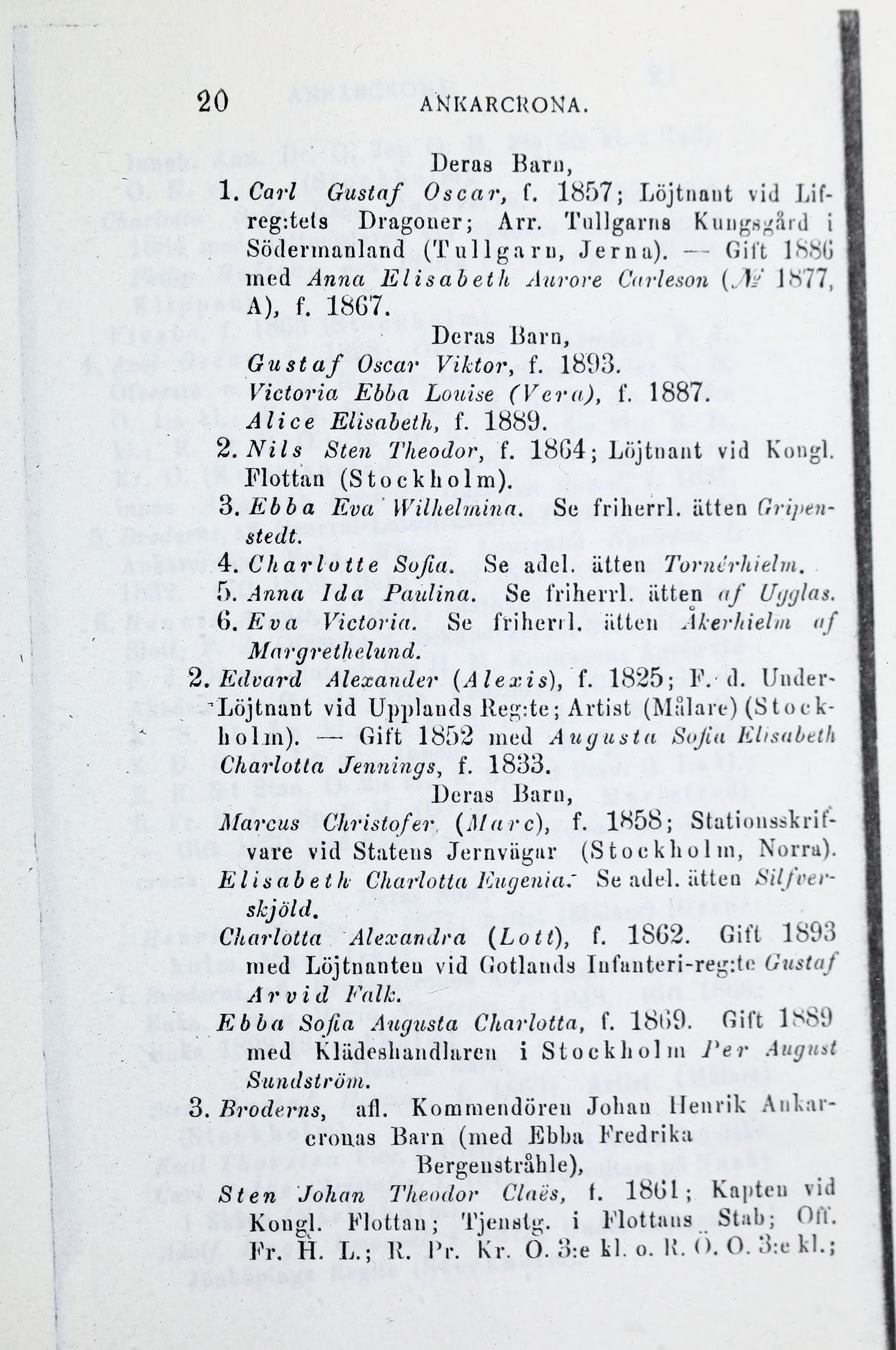 1. Carl Gustaf Oscar, f. 1857; Löjtnant vid