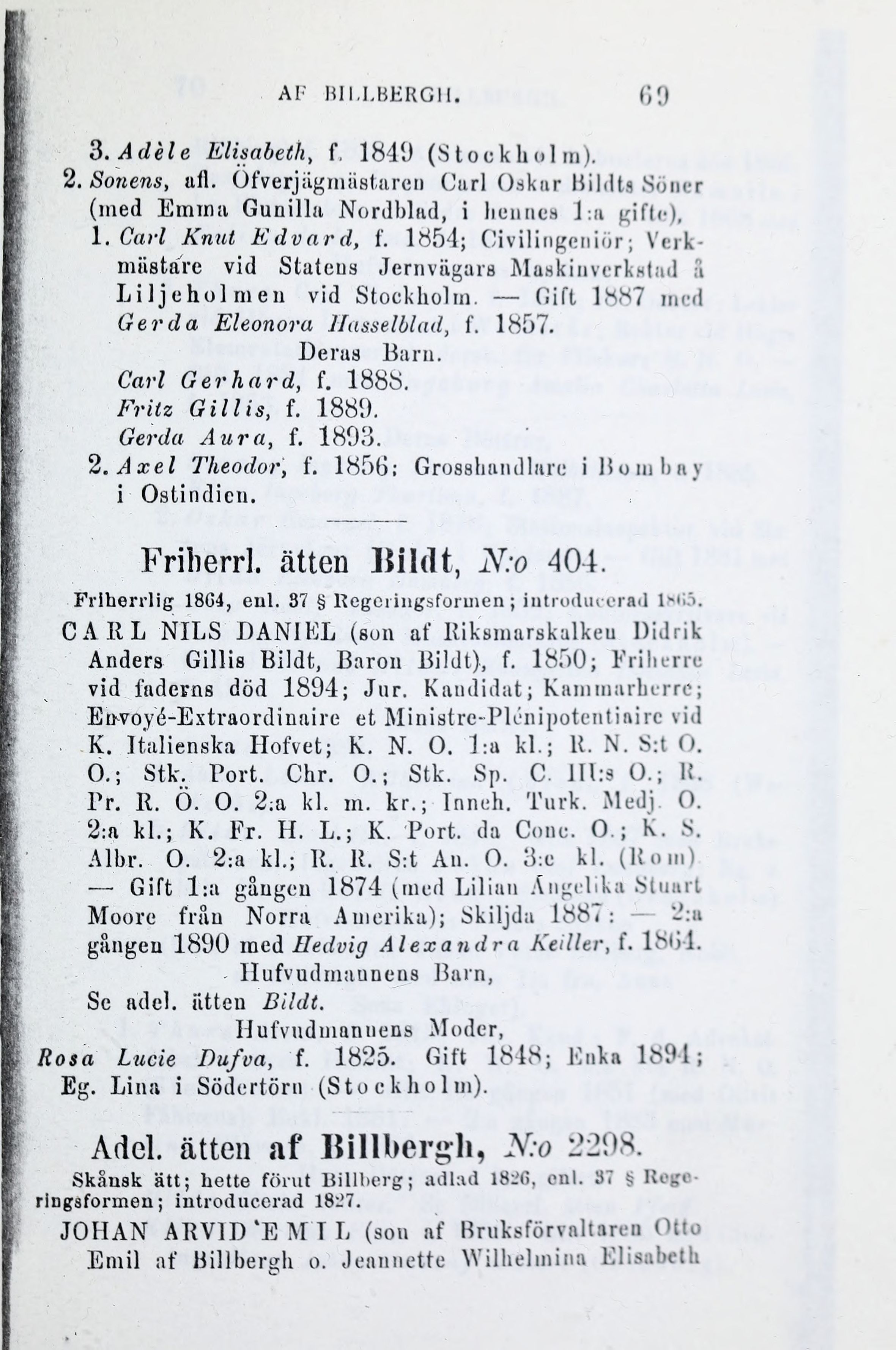 Anders Gillis Bildt, Baron Bildt), f. 1850; Friherre