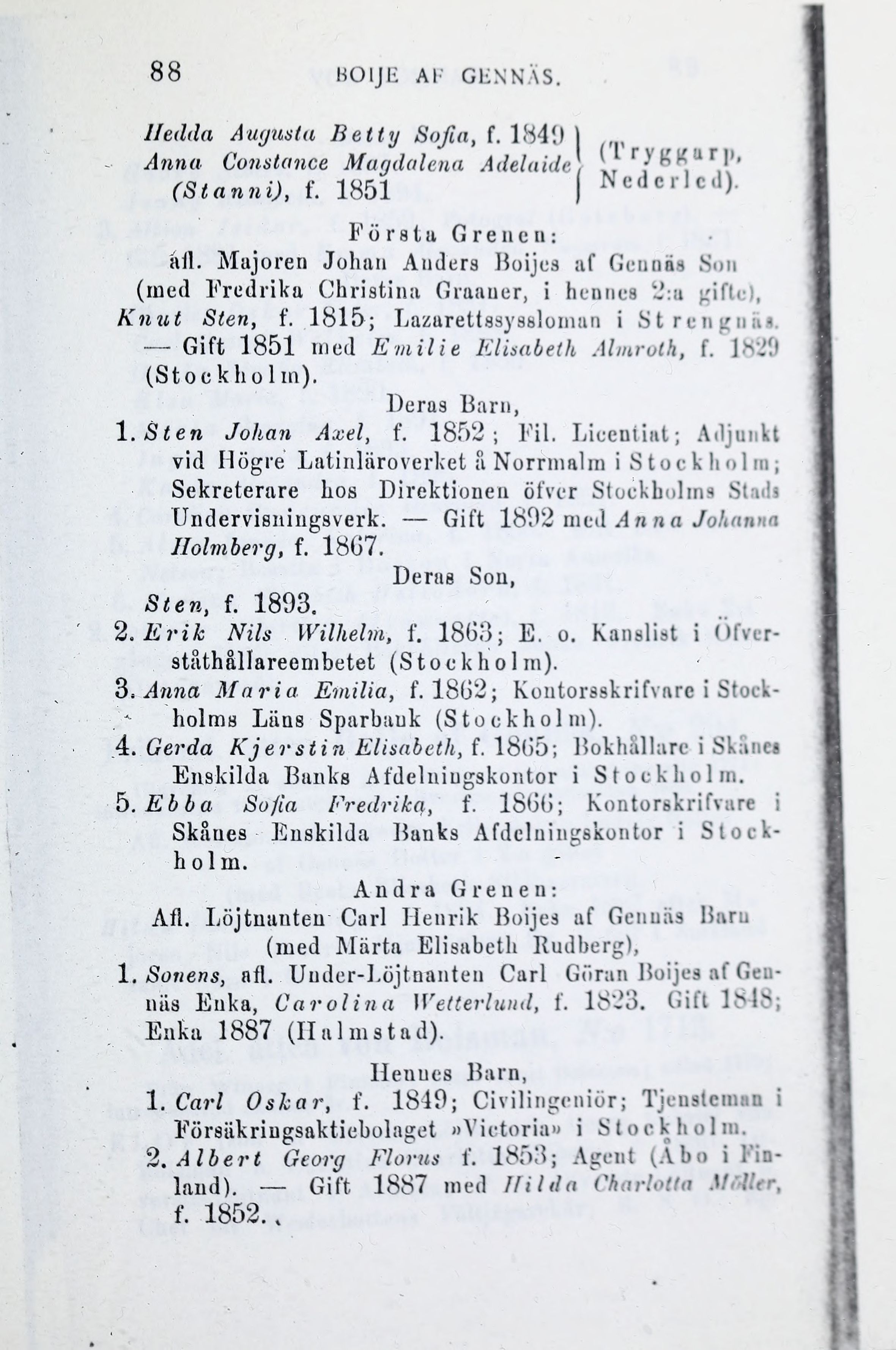 1 .Sten Johan Axel, f. 1852; Fil. Licentiat; Adjunkt