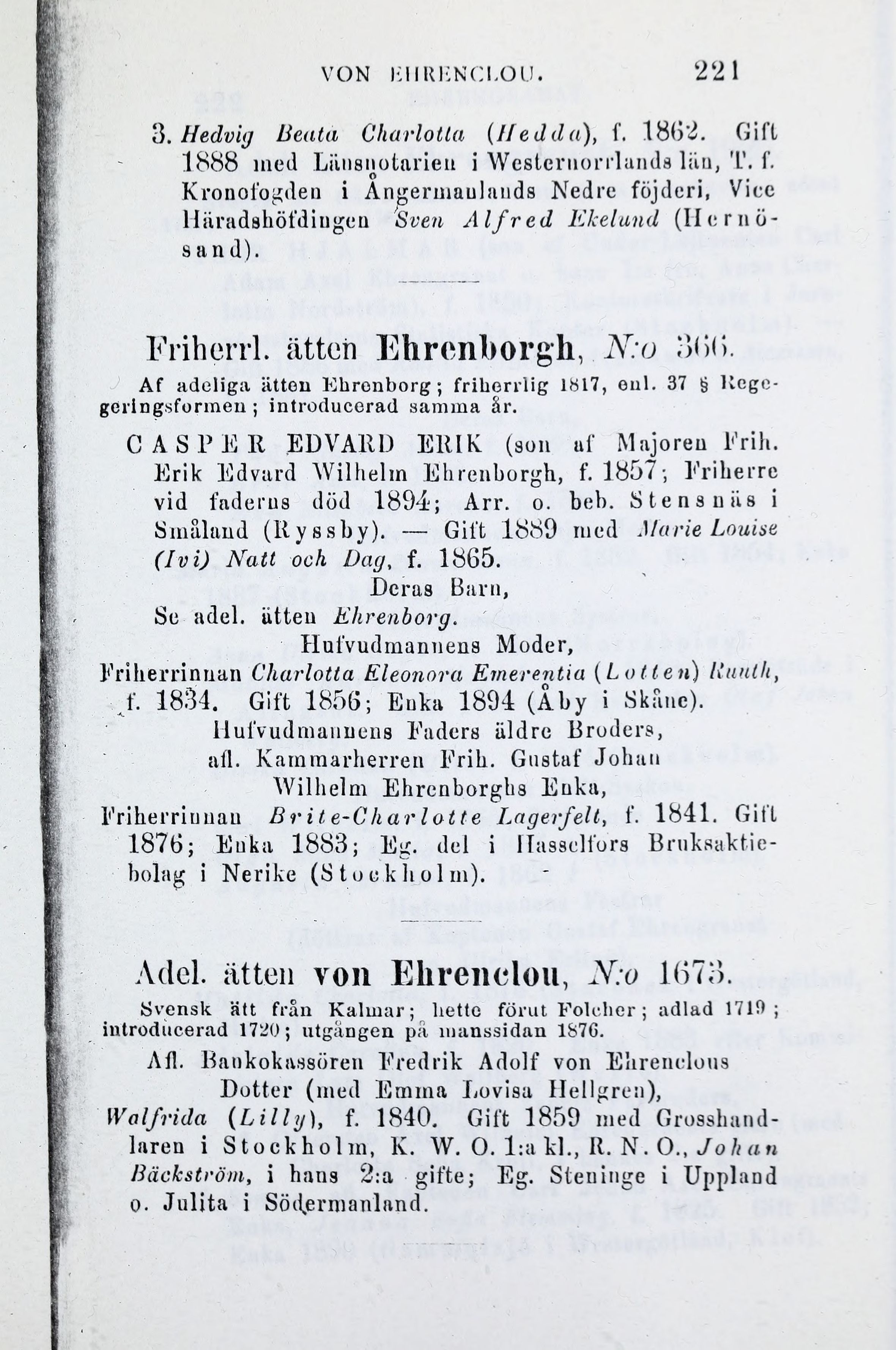 Af adeliga ätten Ehronborg ; friherrlig 1817, enl. 37 §