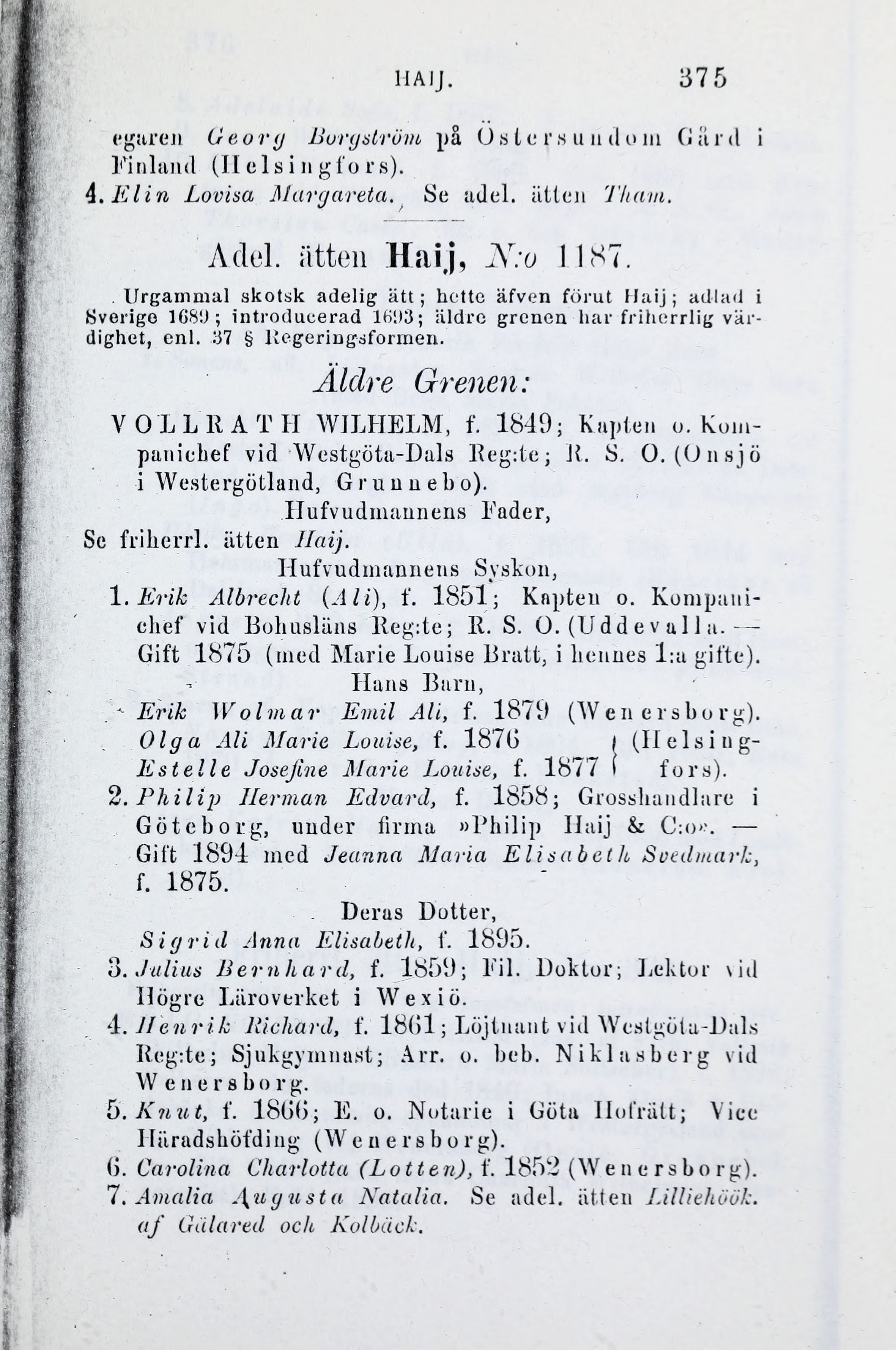 . Urgammal skotsk adelig ätt; hette äfven förut Haij; adlad i