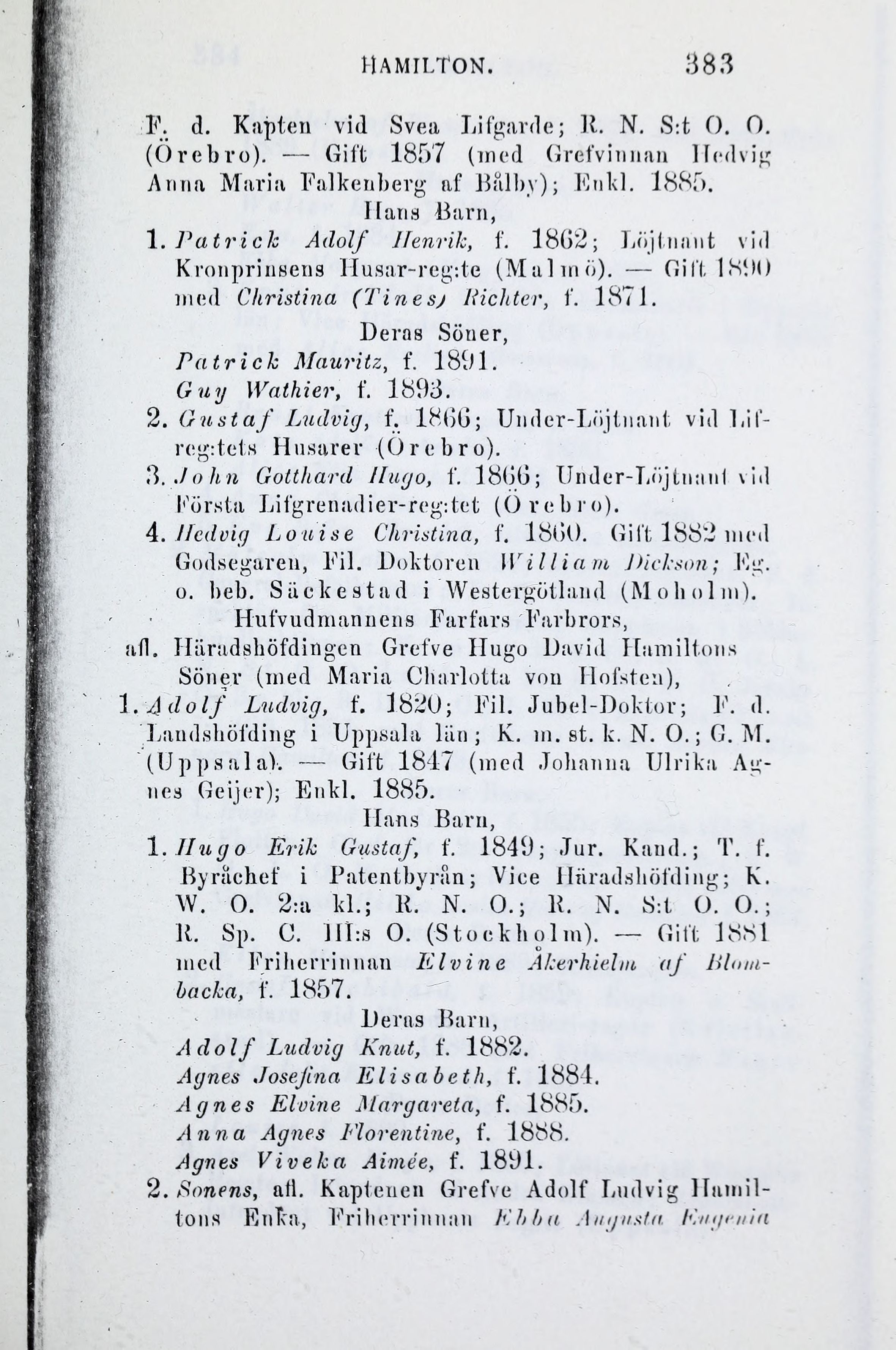 afl, Häradshöfdingen Grefve Hugo David Hamiltons