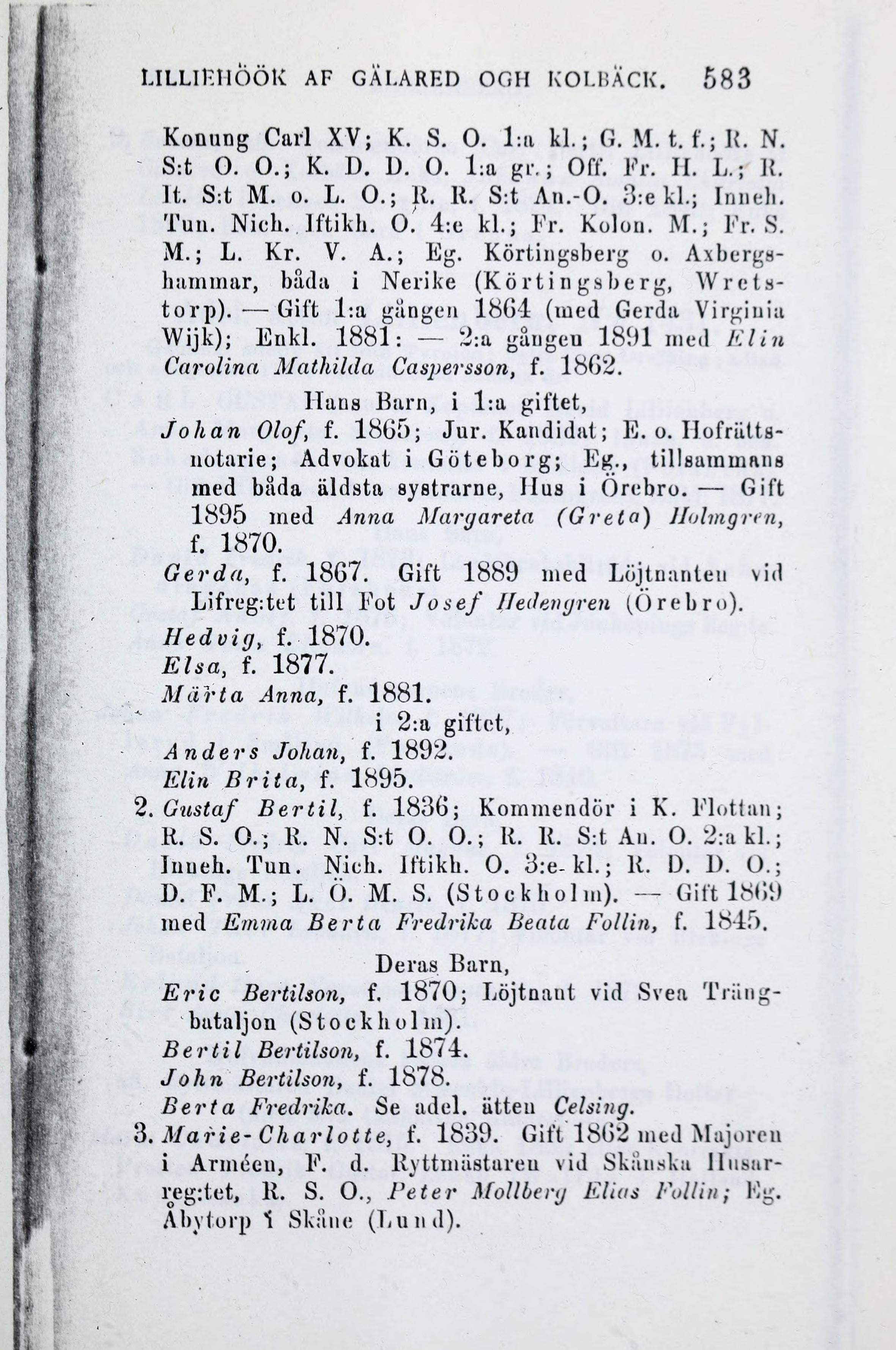 LILLIEHÖÖK AV GÄLARED OCH KOLBÄCK. 583