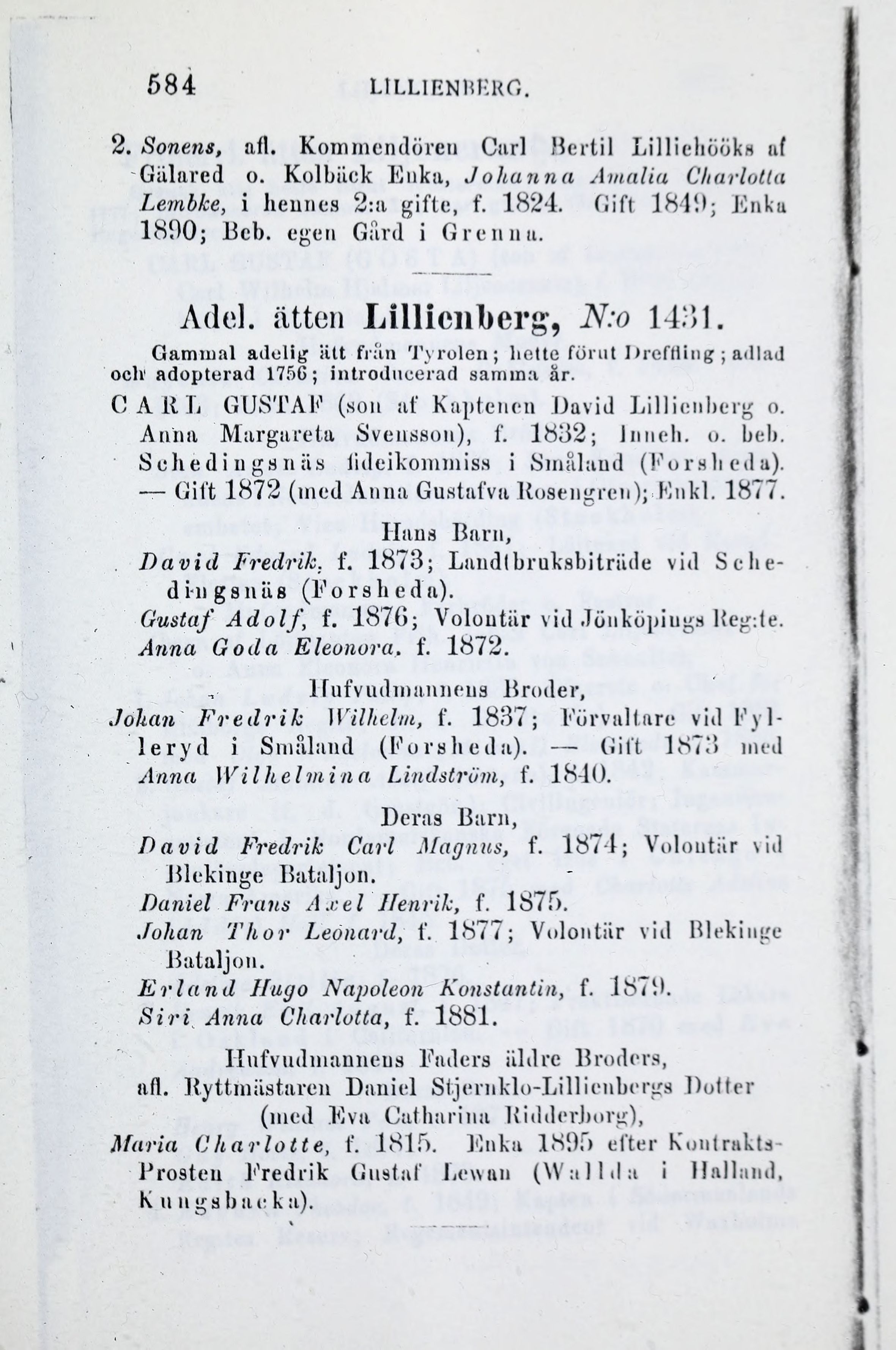 Adel. ätten Lillienborg, N:o 14)51.