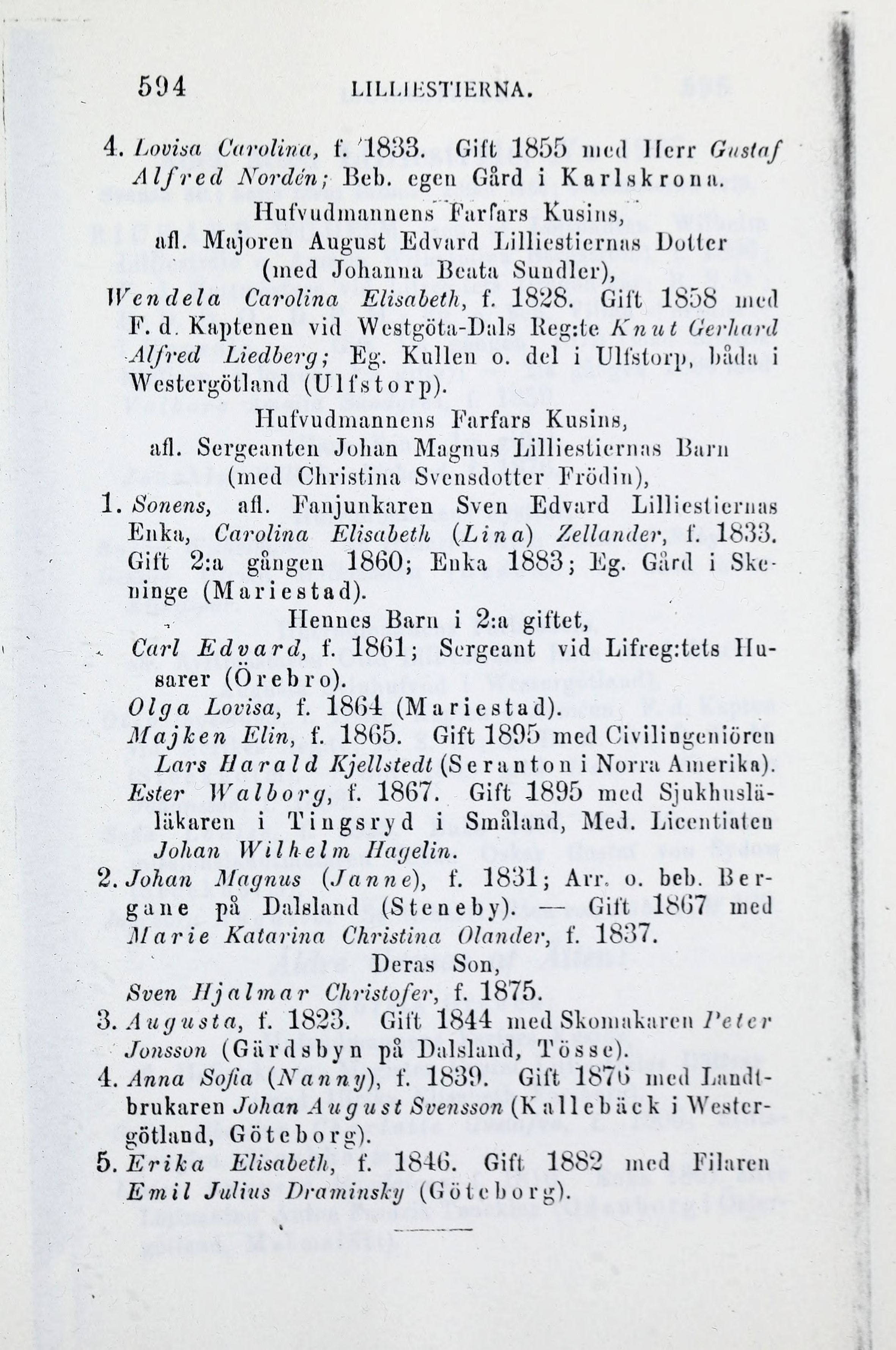 4. Lovida Carolina, f. ’1833. Gift 1855 med Herr Gustaf