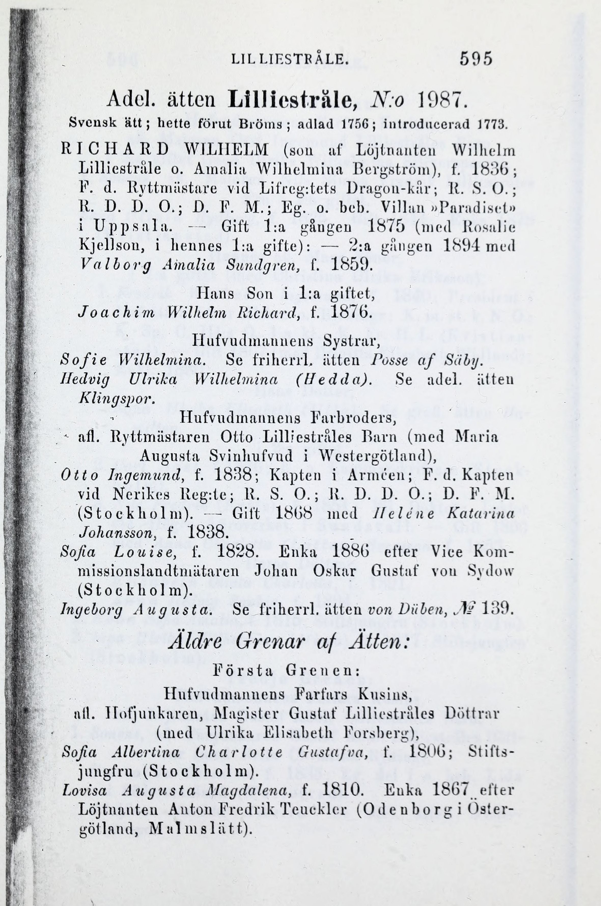 Lilliestråle o. Amalia Wilhelmina Bergström), f. 1836;