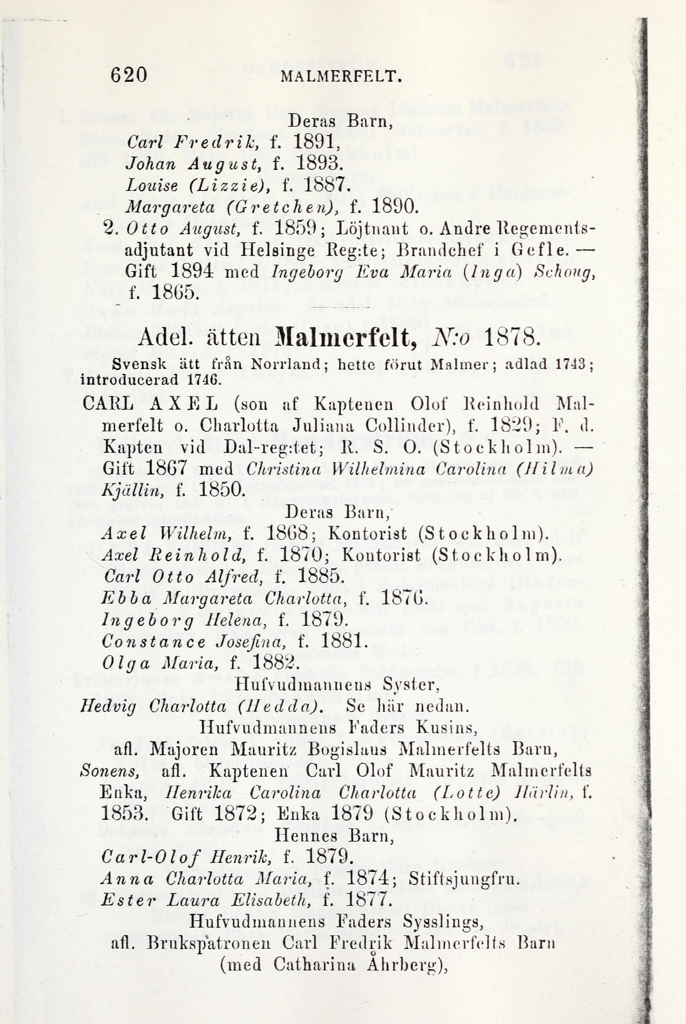 Adel. ätten Malmcrfclt, N:o 1878.