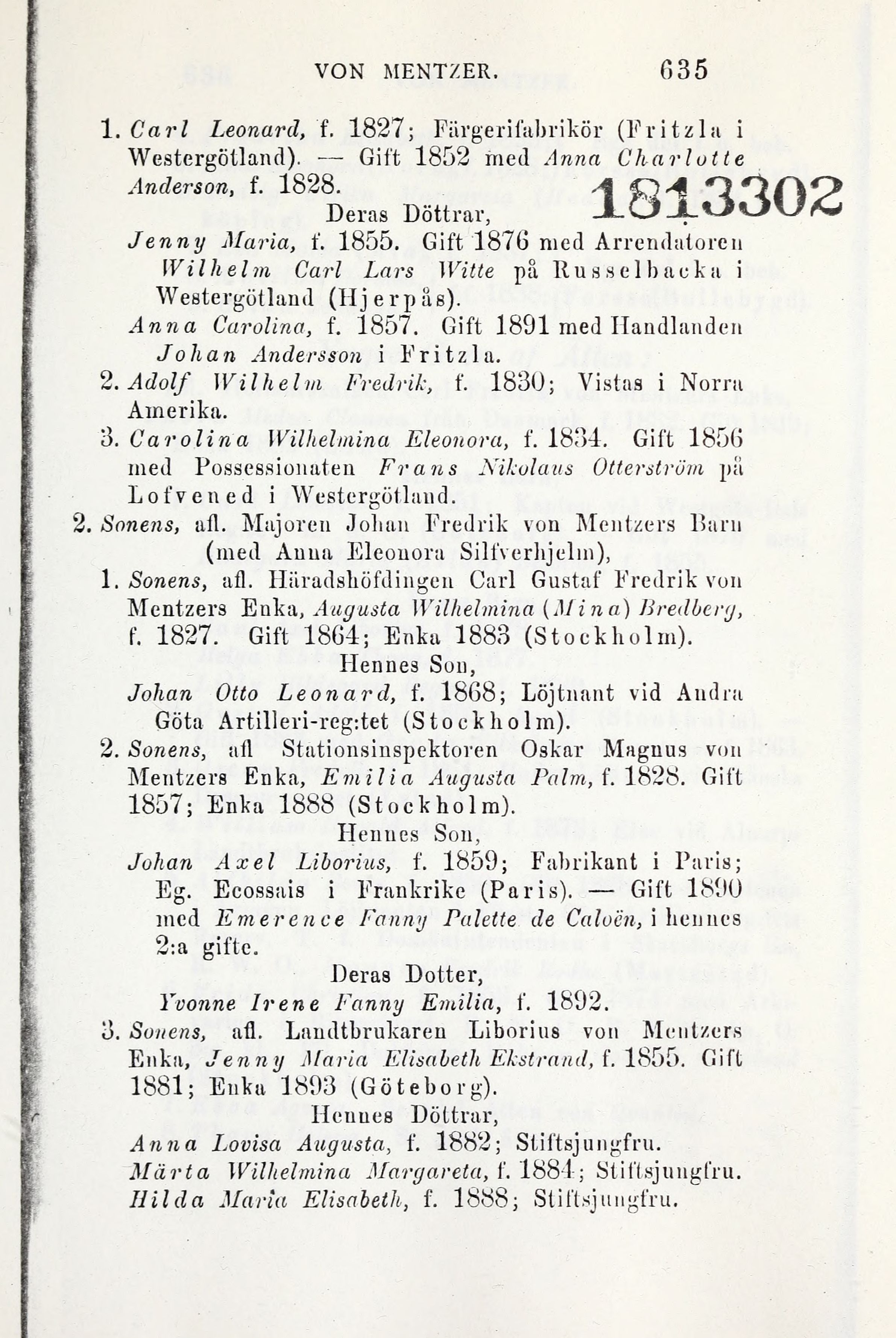 f. 1827. Gift 1864; Enka 1883 (Stockholm).