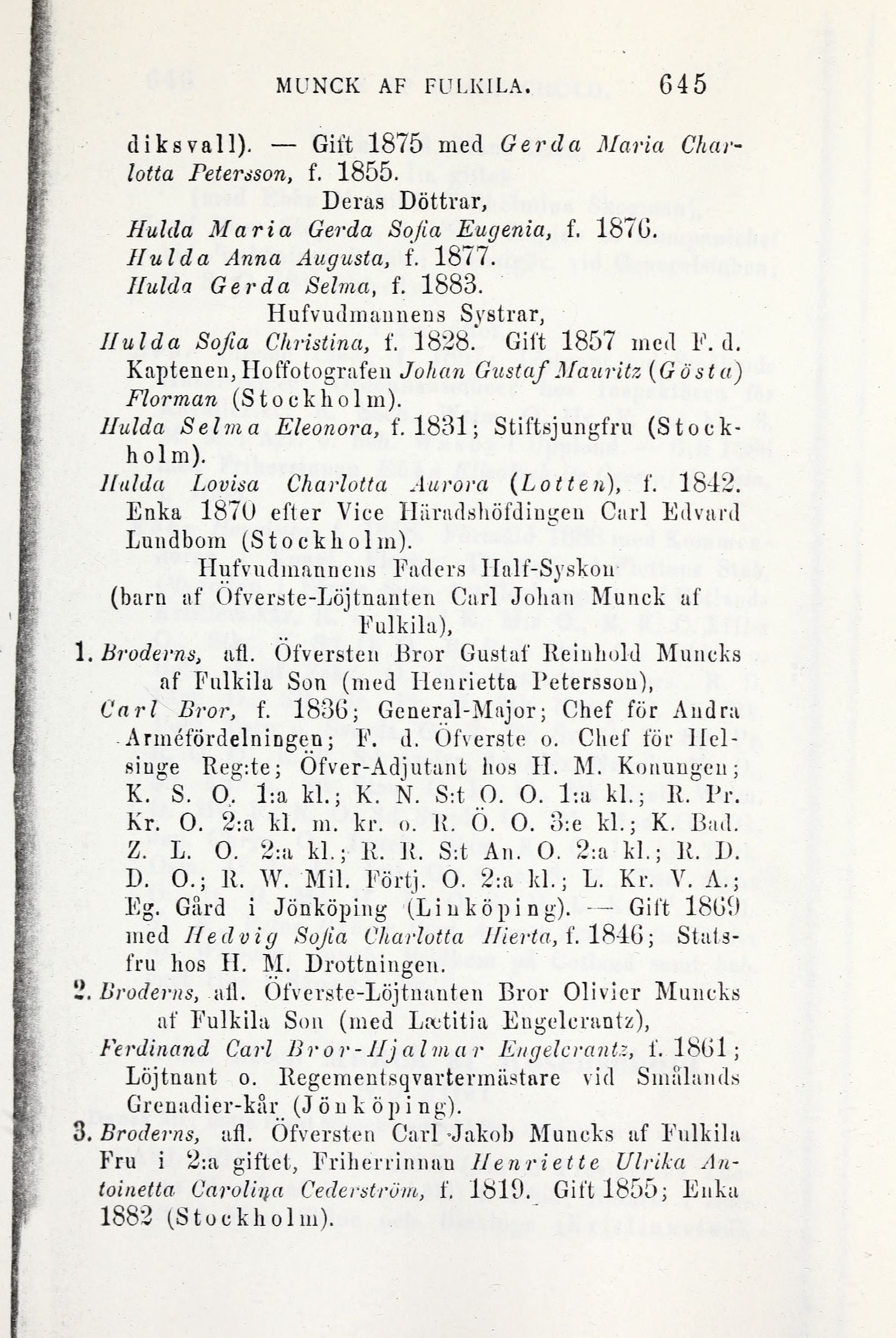 1. Broderns, afl. Öfversten Bror Gustaf Reinhold Muncks