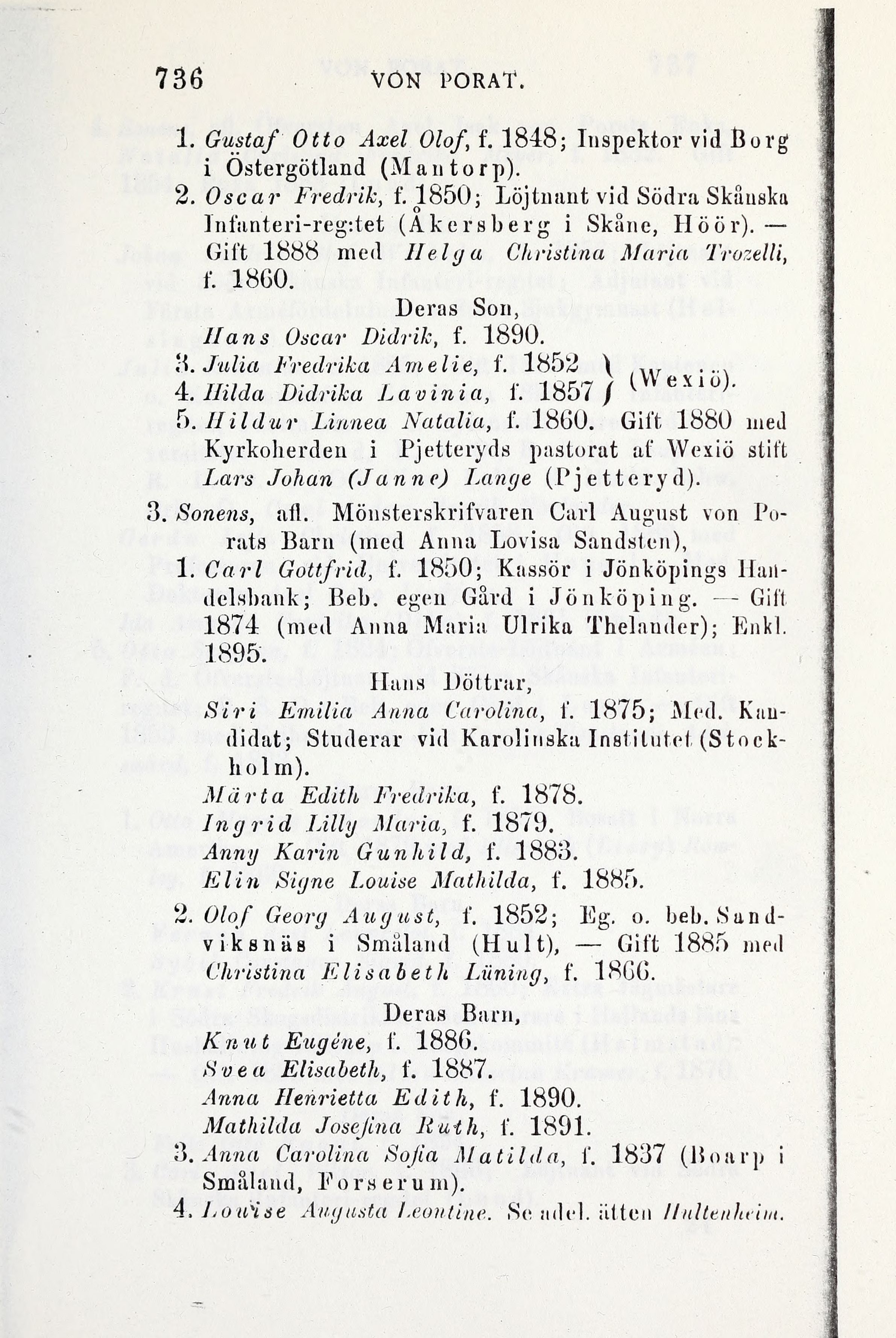 1. Gustaf Otto Axel Olof, f. 1848; Inspektor vid Borg