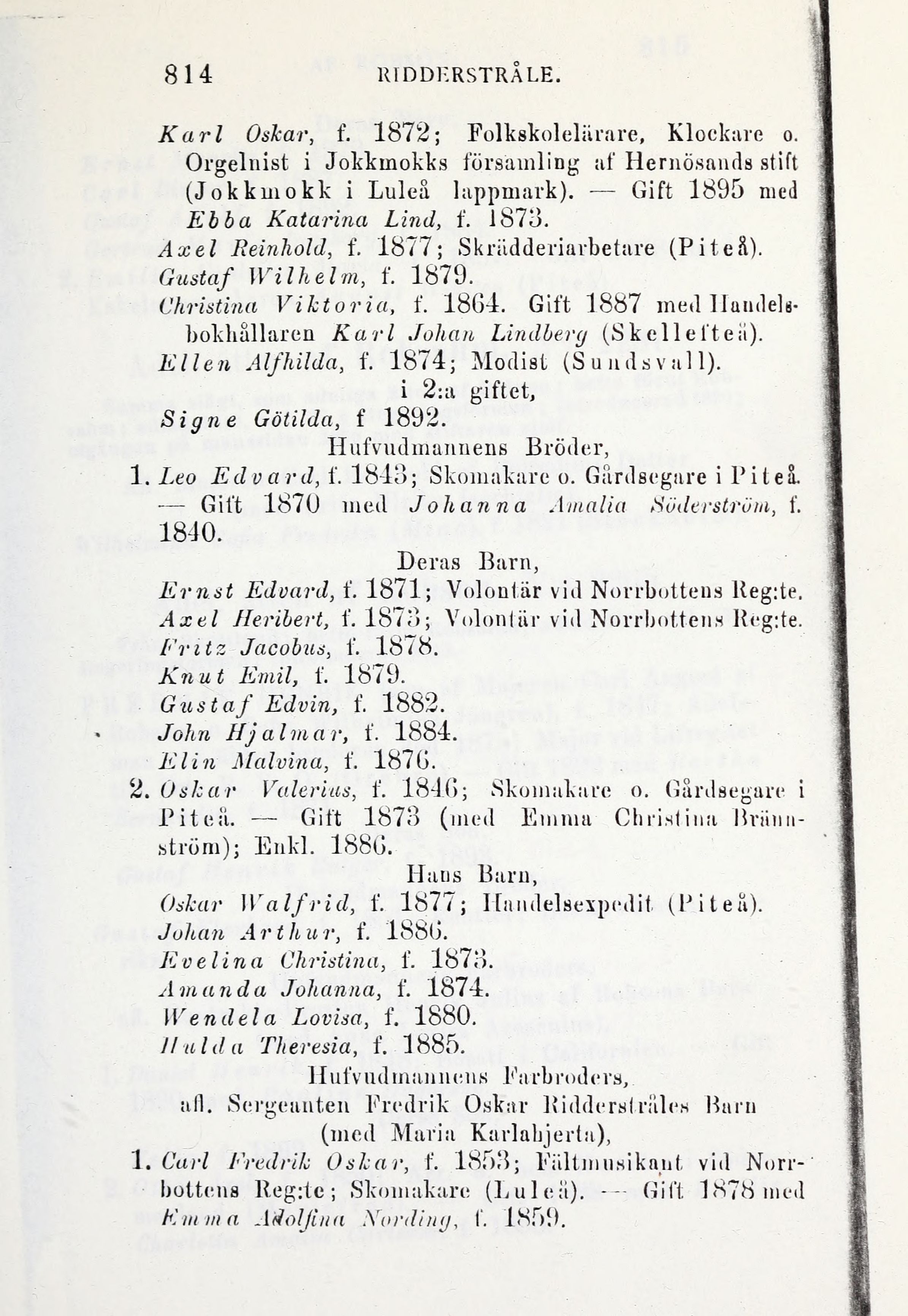 atl. Sergeanten Fredrik Oskar Ridderstråle» Barn